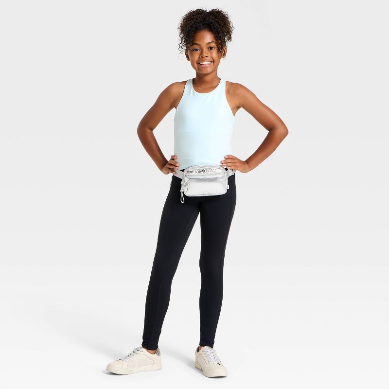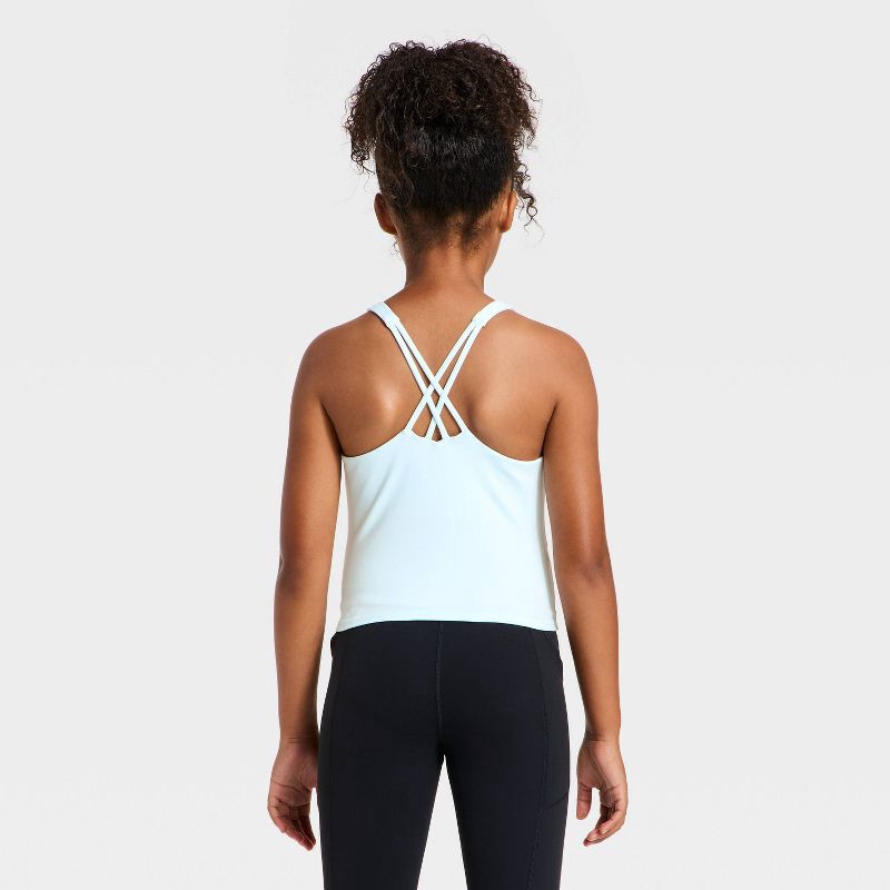 Why we're ALL IN:Strappy tank top designed with a round neckline and a crisscross back. Crafted from midweight recycled polyester-spandex blend interlock fabric to keep your child moving comfortably d…