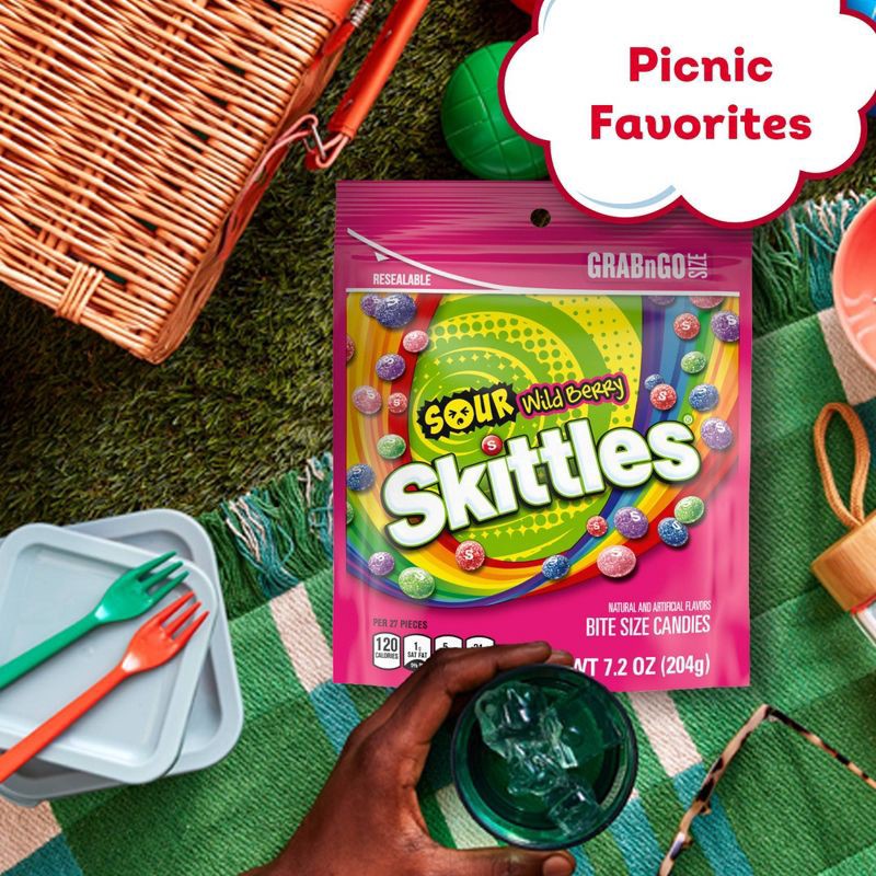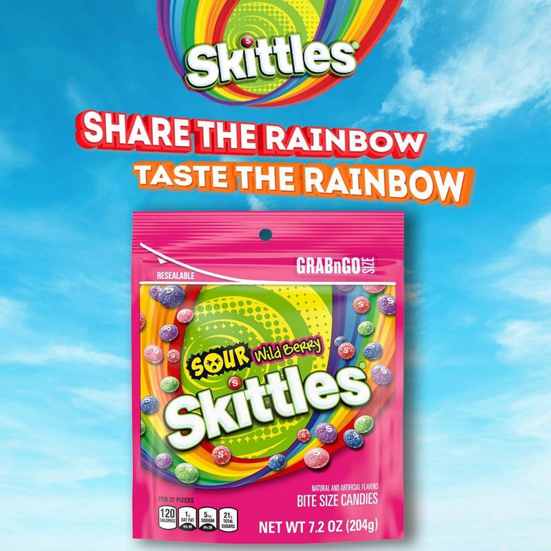 - Contains one (1) 7.2-ounce, grab-n-go SKITTLES SOURS Wild Berry Chewy Candy Bag