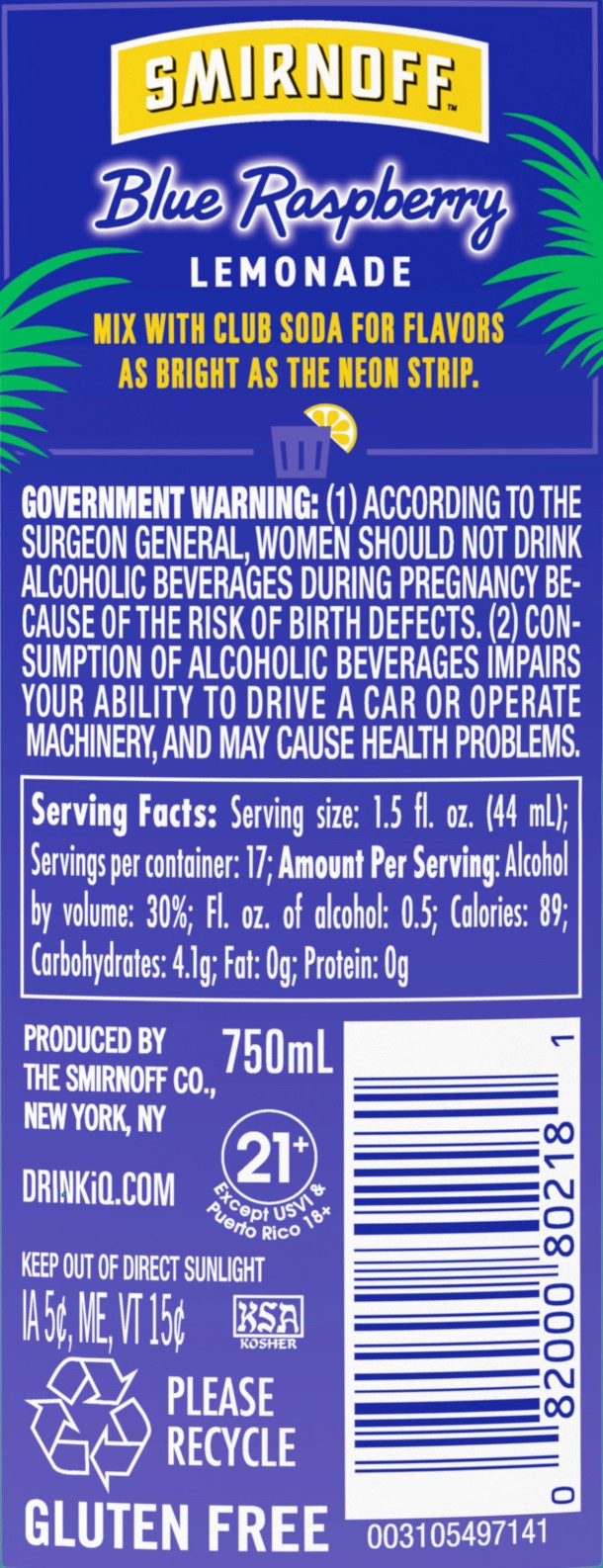 Indulge in nostalgia with Smirnoff Blue Raspberry Lemonade. It offers a bright blue raspberry aroma mixed with nostalgic cotton candy and zesty lemonade. The flavors of sweet blue raspberry are balanc…