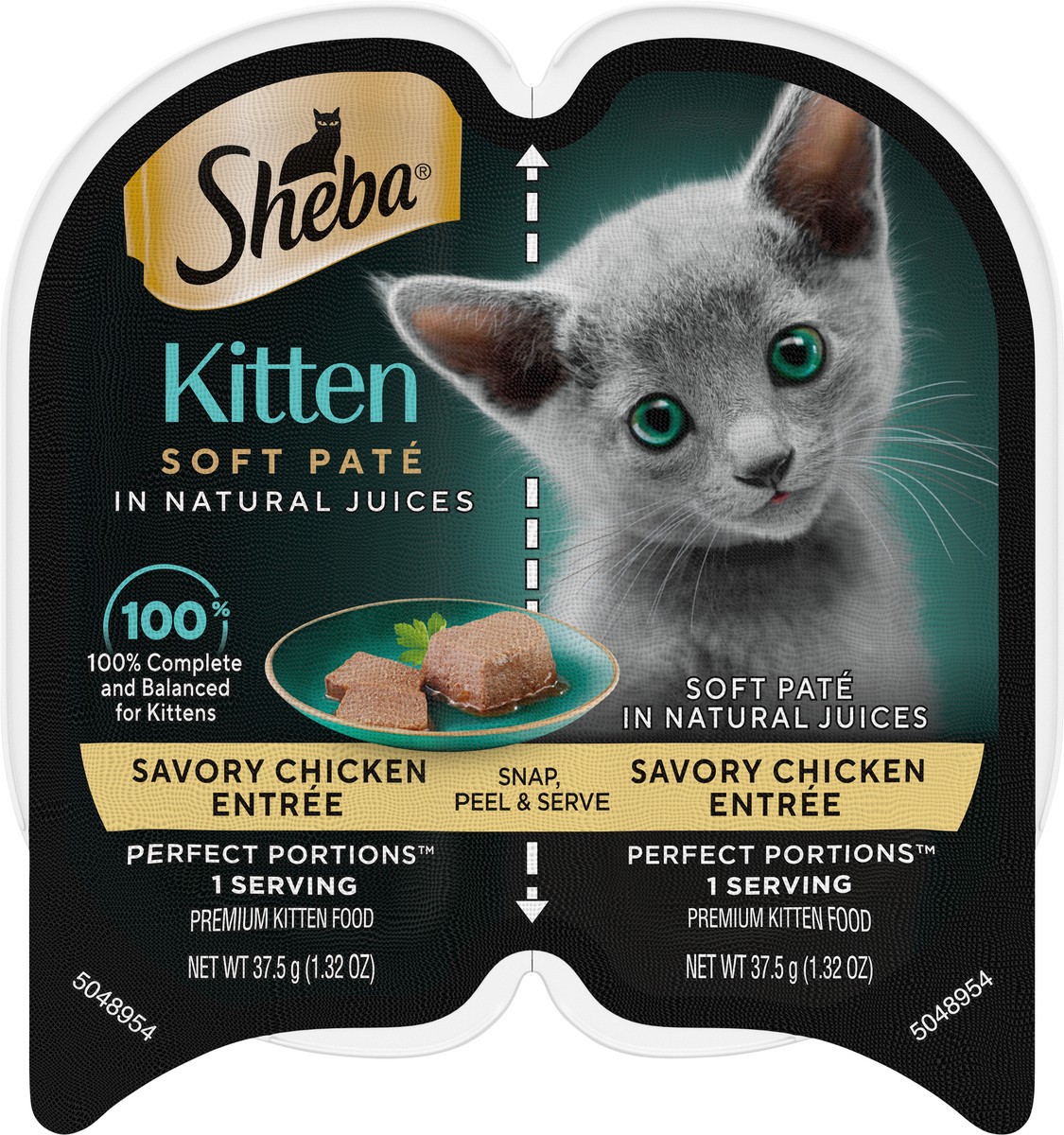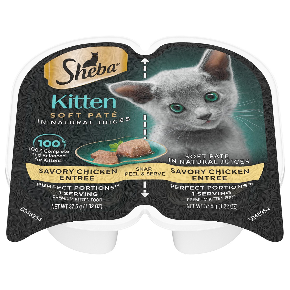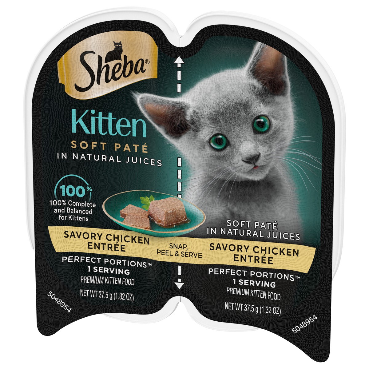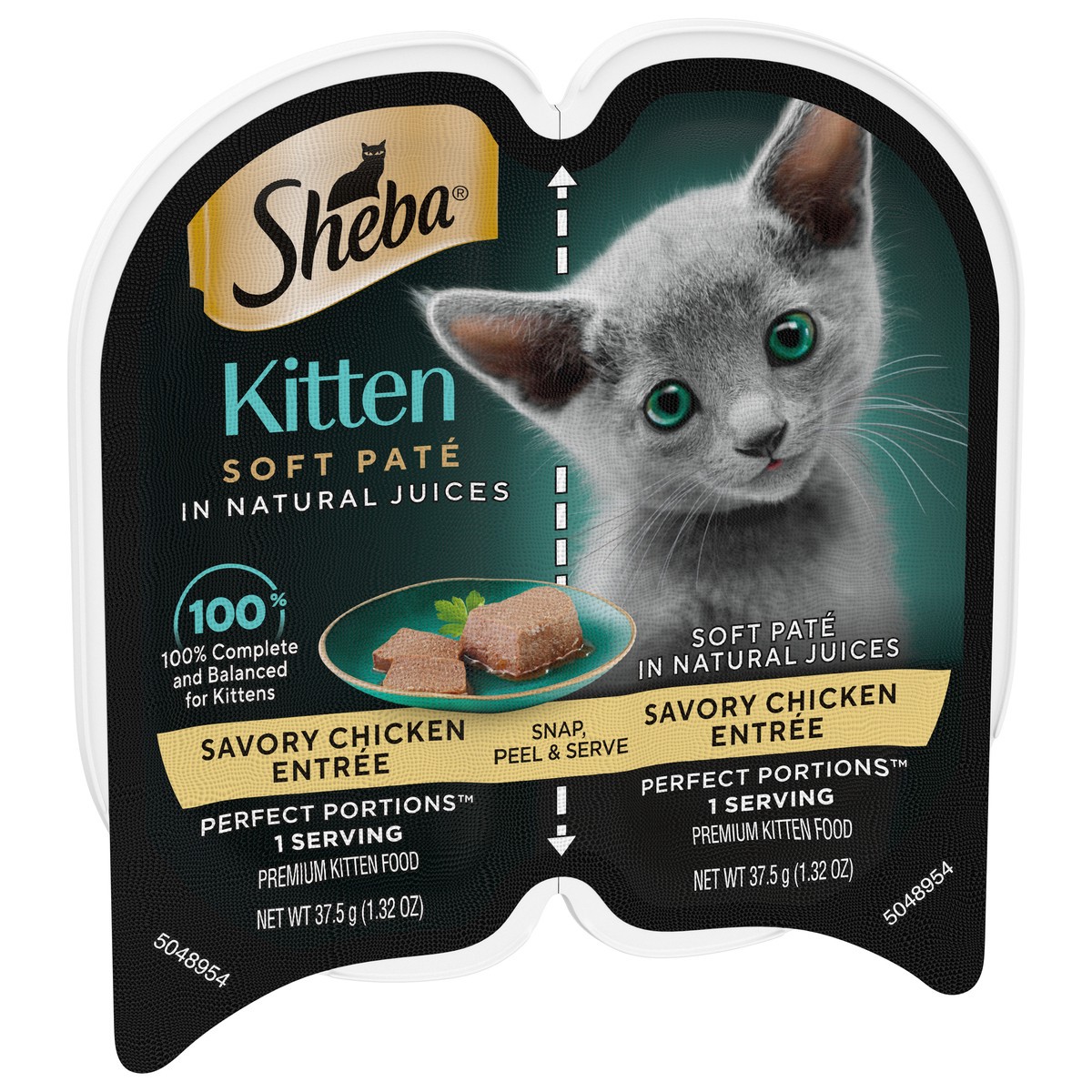 Calorie Content (Calculated): 1131 kcal ME/kg, 42 kcal ME/tray. Sheba Kitten Soft Pate Savory chicken Entree is formulated to meet the nutritional levels established AAFCO Cat Food Nutrient Profiles f…
