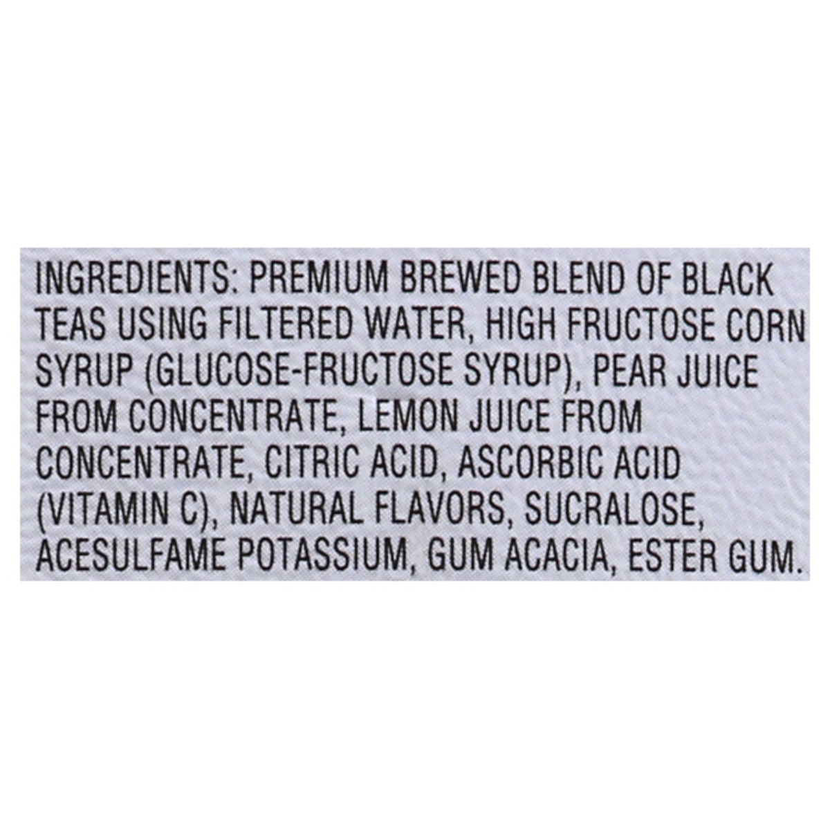 Premium Brewed Blend of Black Teas Using Filtered Water, High Fructose Corn Syrup (Glucose-Fructose Syrup), Lemon Juice from Concentrate, Pear Juice from Concentrate, Citric Acid, Ascorbic Acid (Vitam…