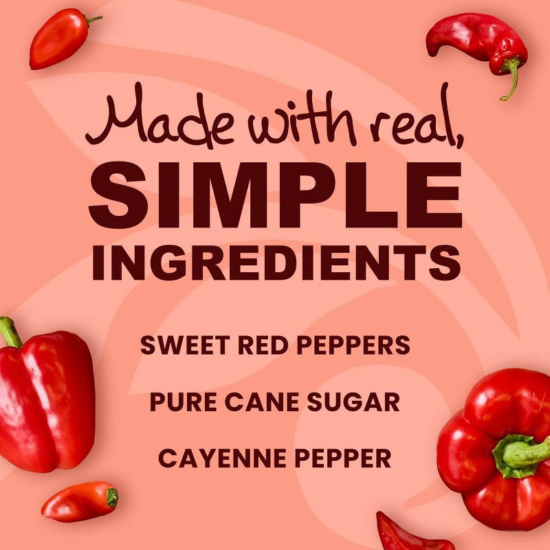 Pure Cane Sugar, Red Bell Pepper, Fruit Pectin (Water And Pectin), Cider Vinegar, White Vinegar, Pepper Sauce (Cayenne Peppers, Vinegar, Water, Salt, Natural Flavor, Garlic), Salt, Citric Acid