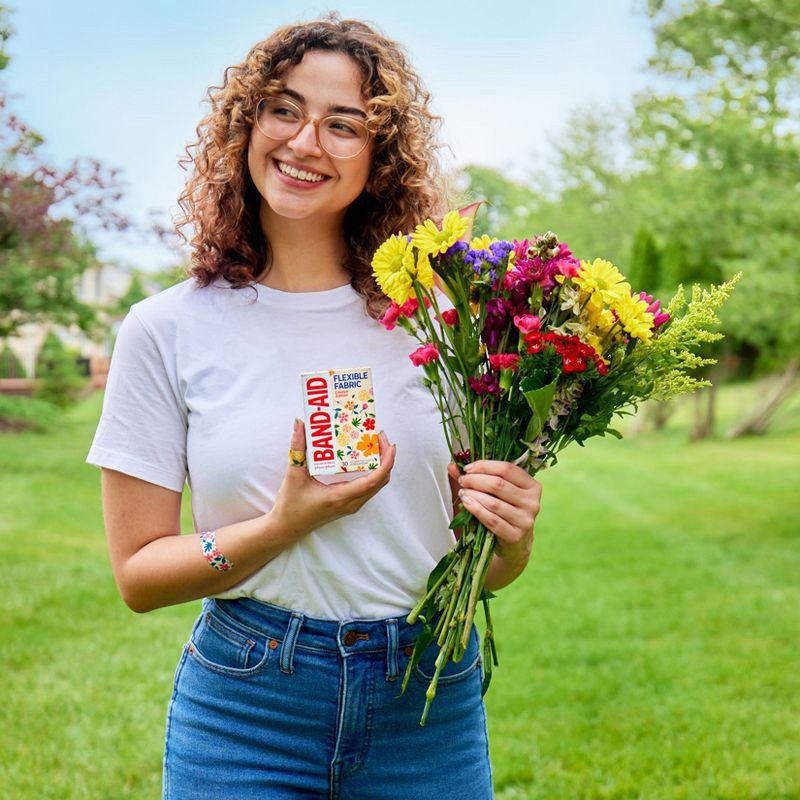 Cover and protect minor cuts, scrapes, burns, and wounds from dirt and germs and express your personal style with designer BAND-AID Brand Flexible Fabric Adhesive Bandages with a decorative Wildflower…