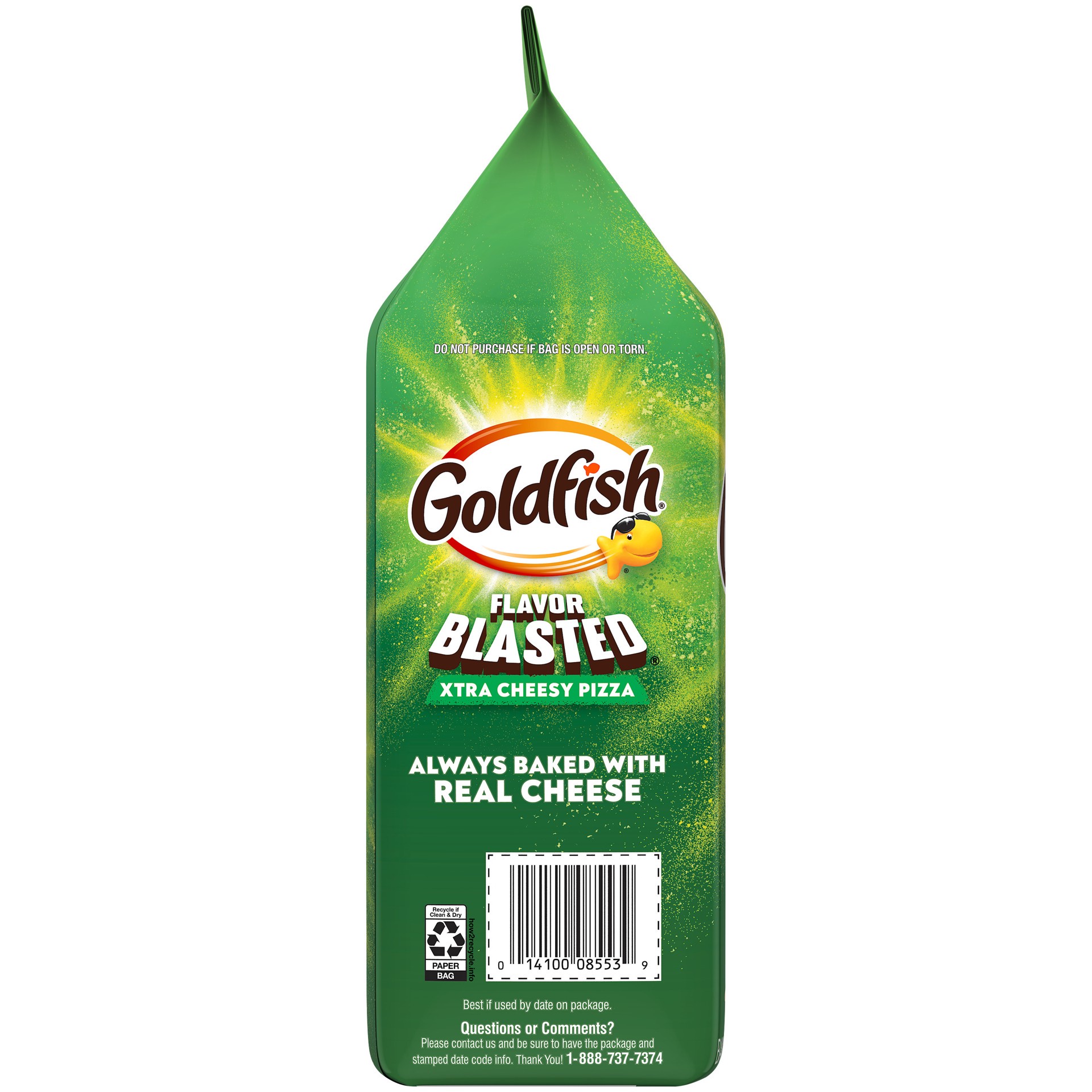 - Includes one (1) 6.6-ounce bag of Goldfish Flavor Blasted Xtra Cheesy Pizza Crackers