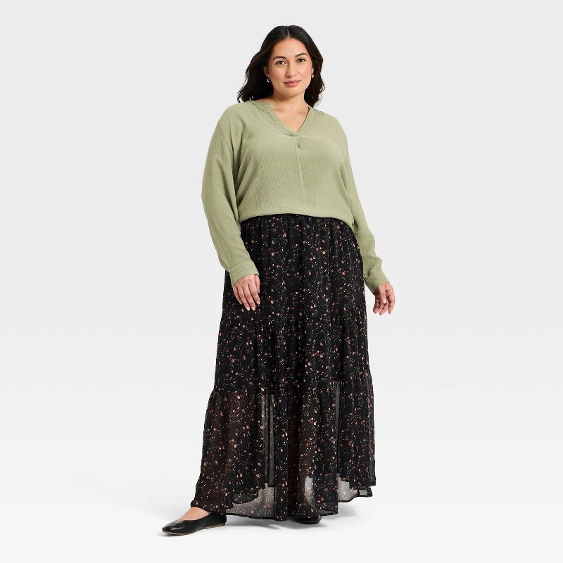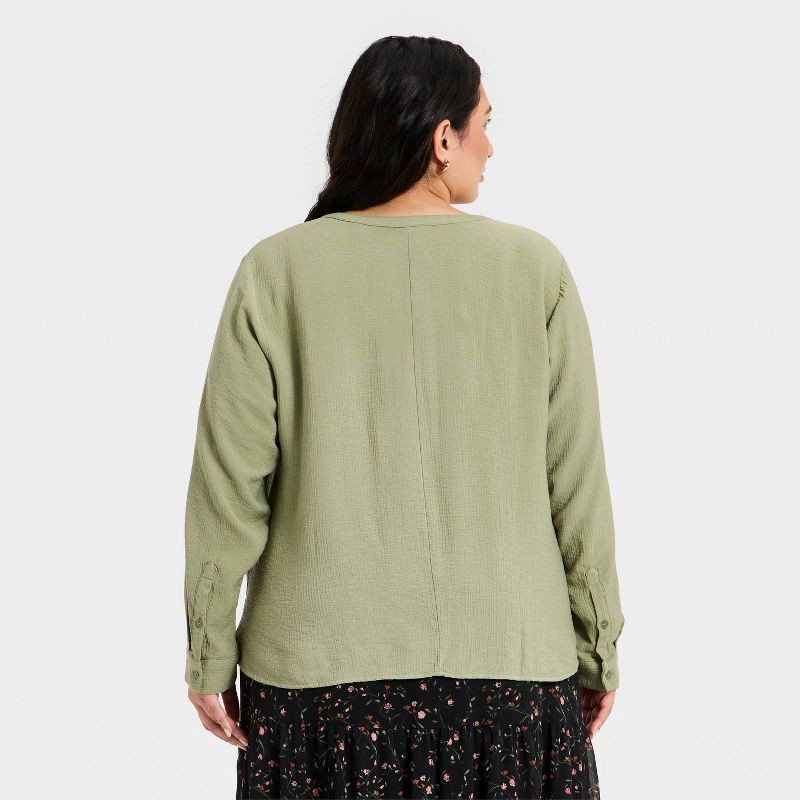Add cool, breezy charm to your everyday wardrobe with this Long-Sleeve Popover Blouse from Ava & Viv™. This popover blouse is made from rayon-nylon blend crepe fabric in a relaxed fit for all-day comf…