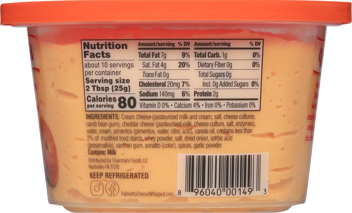 Cream Cheese (Pasteurized Milk and Cream, Salt, Cheese Cultures, Carob Bean Gum), Cheddar Cheese (Pasteurized Milk, Cheese Culture, Salt, Enzymes), Water, Cream, Pimentos (Pimentos, Water, Citric Acid…