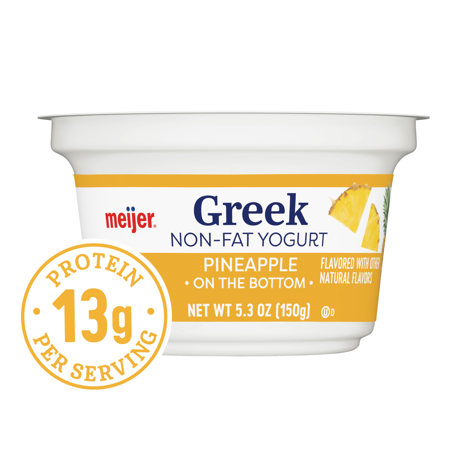 Indulge in the tropical delight of Meijer Greek Yogurt Pineapple. This non-fat yogurt is packed with a punch of protein and the sweet, tangy flavor of pineapple, making it a delicious and nutritious s…