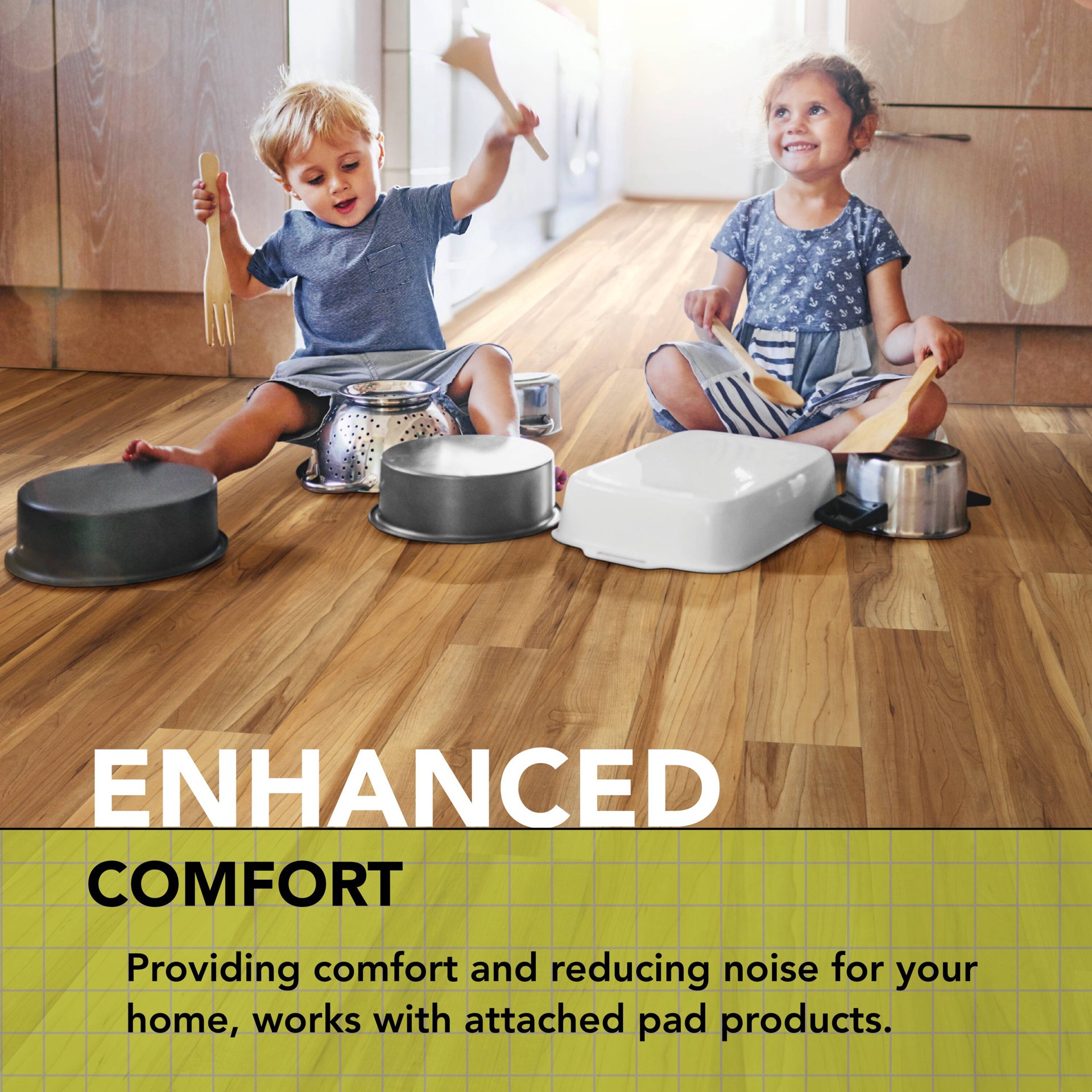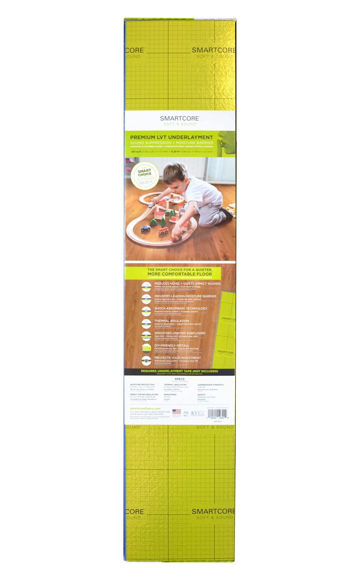 Premium LVT underlayment featuring sound suppression and moisture barrier quiets impact sounds and guards against mold and mildew beneath subfloor. Approved for use with all SMARTCORE floors (even wit…