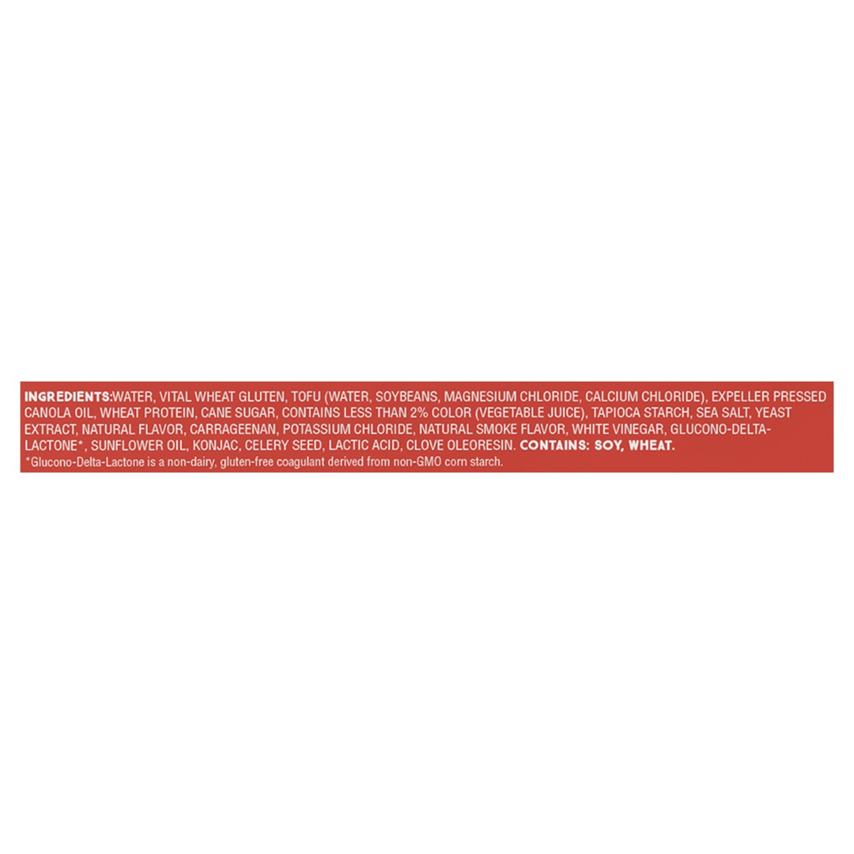 Water, Vital Wheat Gluten, Tofu (Water, Soybeans, Magnesium Chloride, Calcium Chloride), Expeller Pressed Canola Oil, Wheat Protein, Cane Sugar, Contains Less than 2% Color (Vegetable Juice), Tapioca …