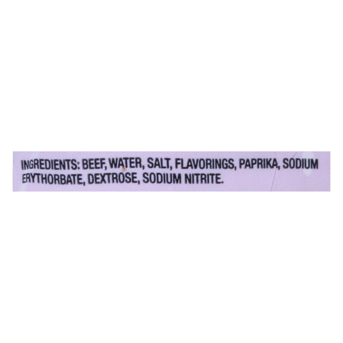 Beef, Water, Salt, Flavorings, Paprika, Sodium Erythorbate, Dextrose, Sodium Nitrite.