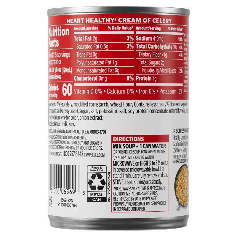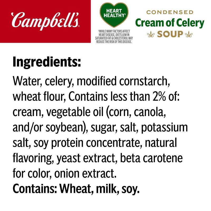Add rich, creamy flavor to your favorite dishes with Campbell's Condensed Heart Healthy* Cream of Celery Soup. This vegetarian soup is crafted with celery, onion and farm-fresh cream to provide a deli…