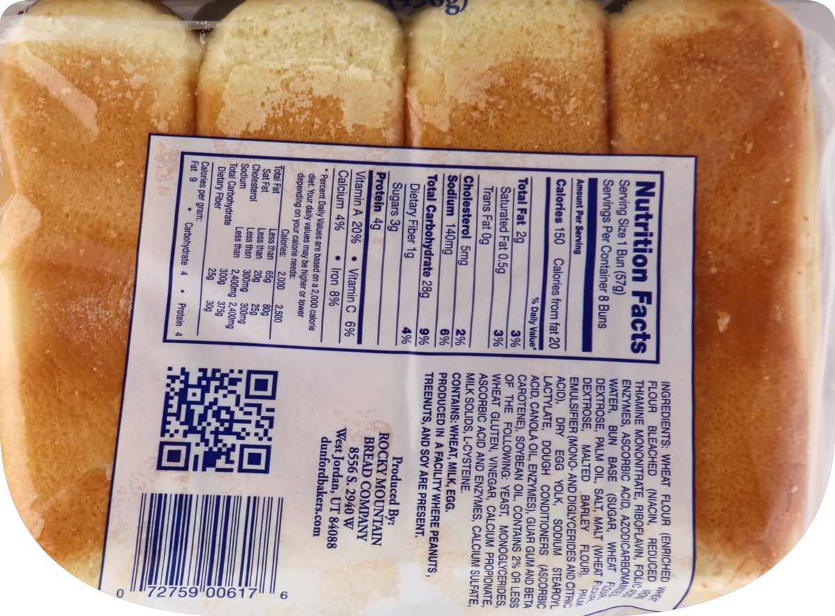 Dunford Hot Dog Buns 8 Pk - 16 Oz