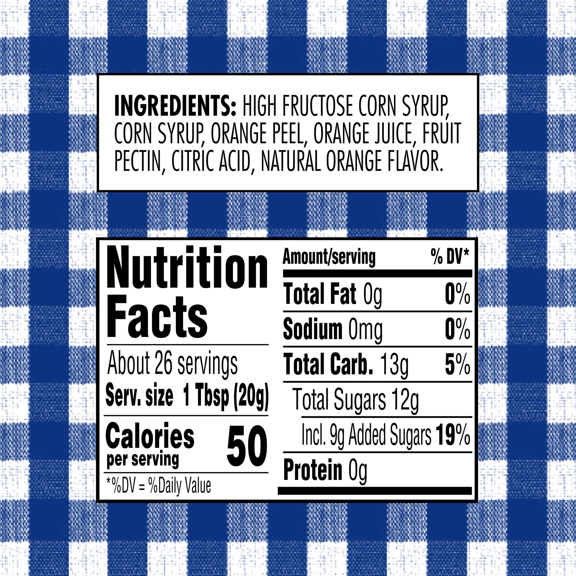 High Fructose Corn Syrup, Corn Syrup, Orange Peel, Orange Juice, Fruit Pectin, Citric Acid, Natural Orange Flavor.