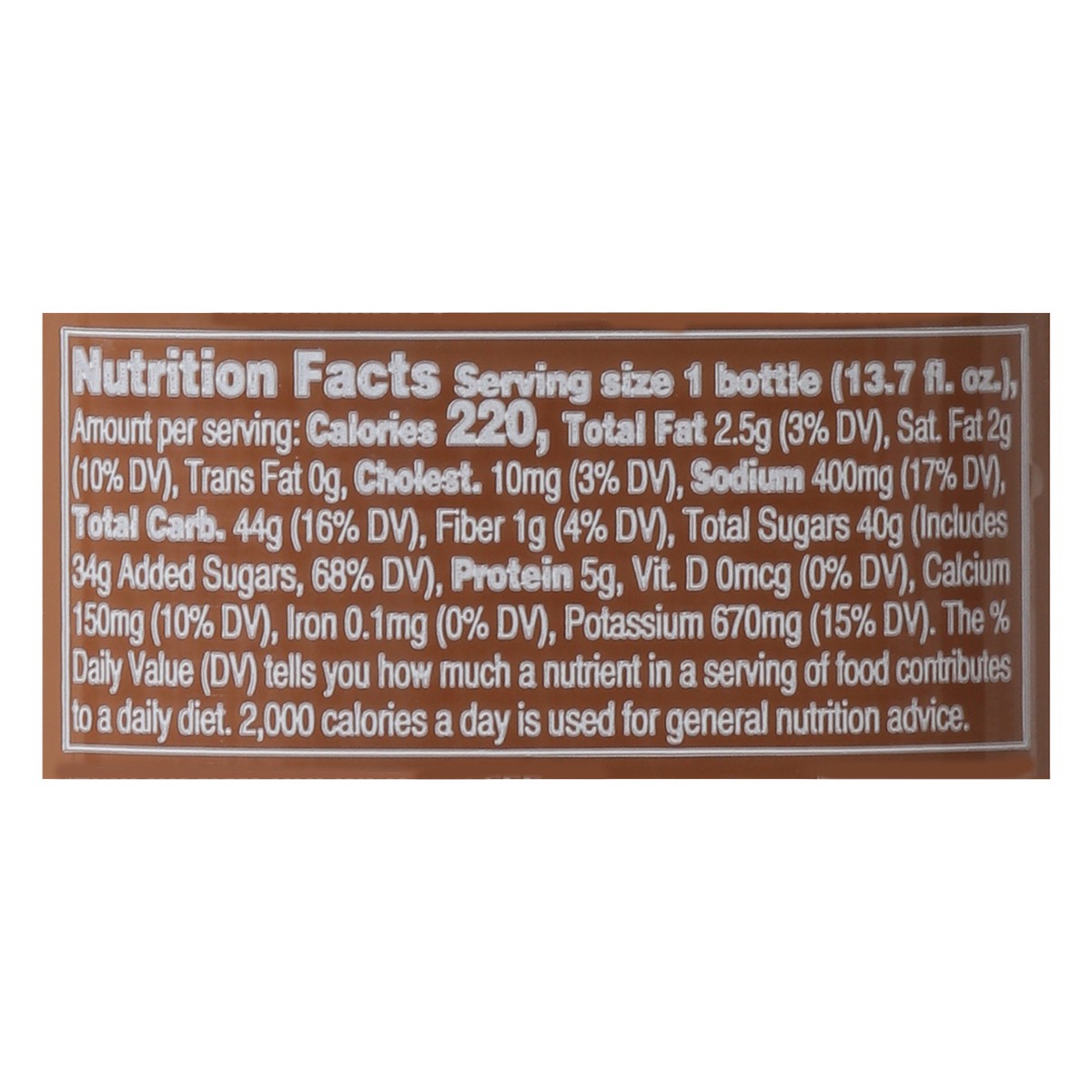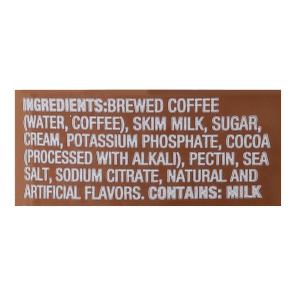 Brewed Coffee (Water, Coffee), Skim Milk, Sugar, Cream, Potassium Phosphate, Cocoa (Processed with Alkali), Pectin, Sea Salt, Sodium Citrate, Natural and Artificial Flavors.