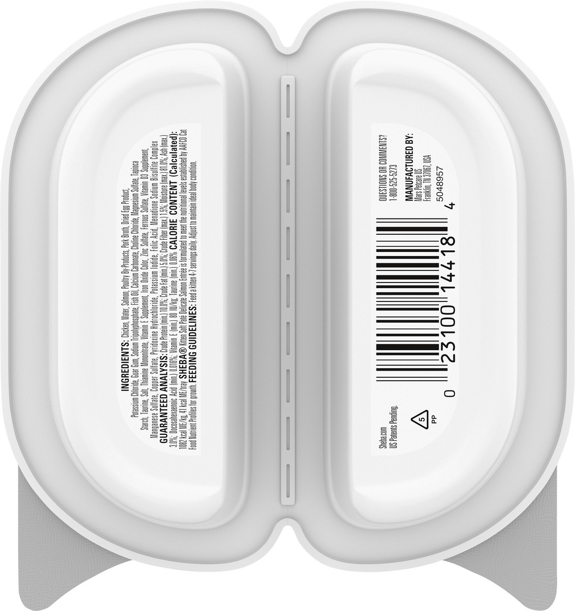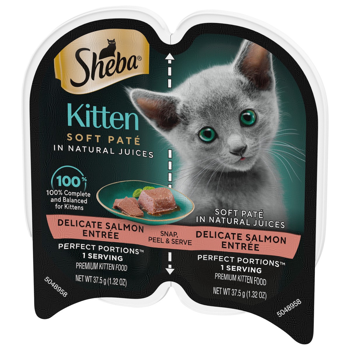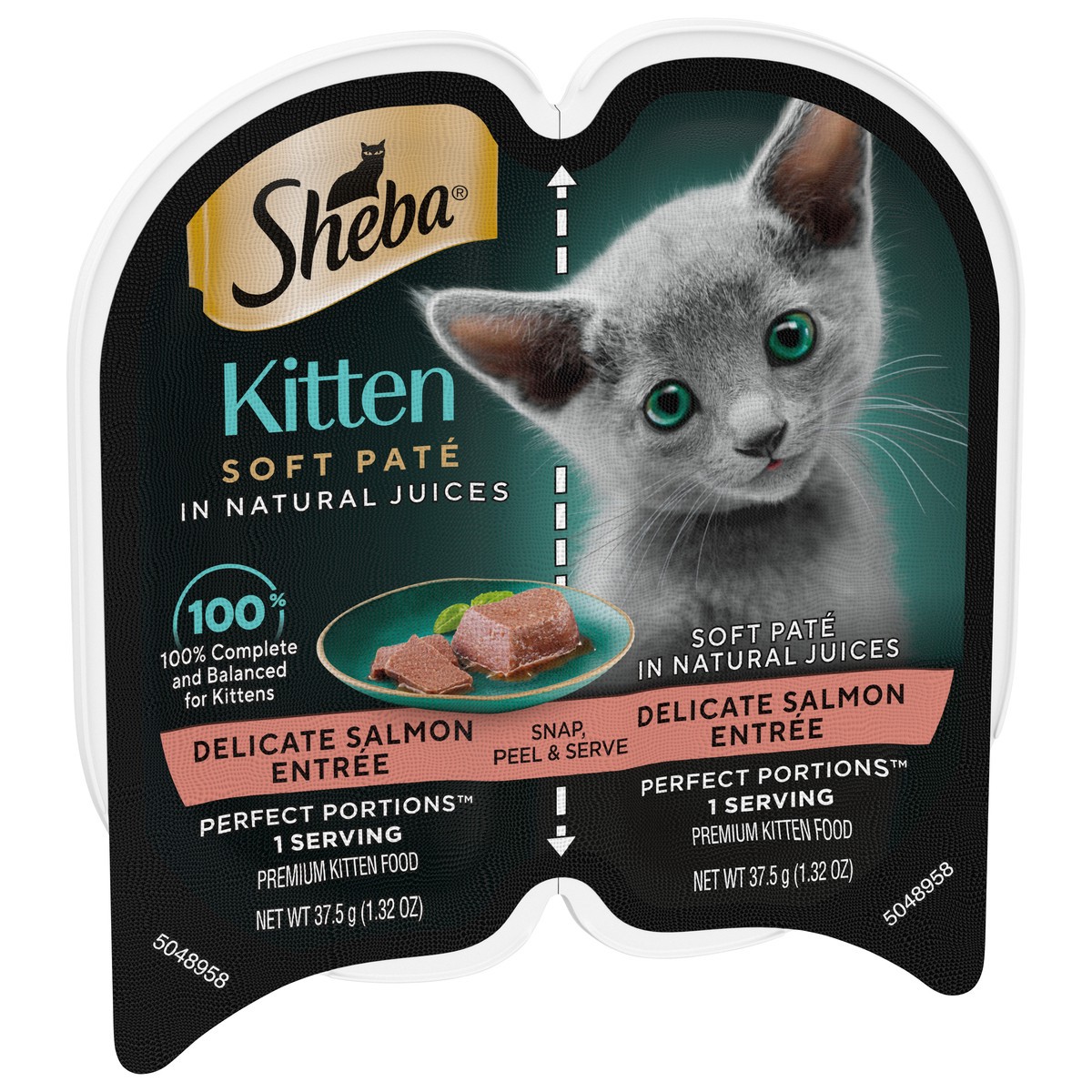 Calories Content (Calculated): 1082 kcal ME/kg, 41 kcal ME/tray. Sheba Kitten Soft Pate Delicate Salmon Entree is formulated to meet the nutritional levels established by AAFCO Cat Food Nutrient Profi…