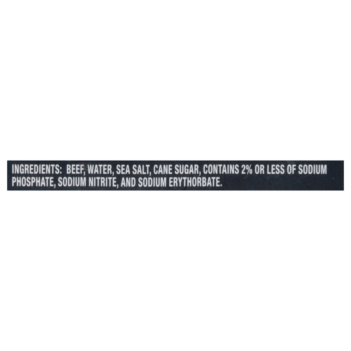BEEF, WATER, SEA SALT, CANE SUGAR, CONTAINS 2% OR LESS OF SODIUM PHOSPHATE, SODIUM NITRITE, SODIUM ERYTHORBATE