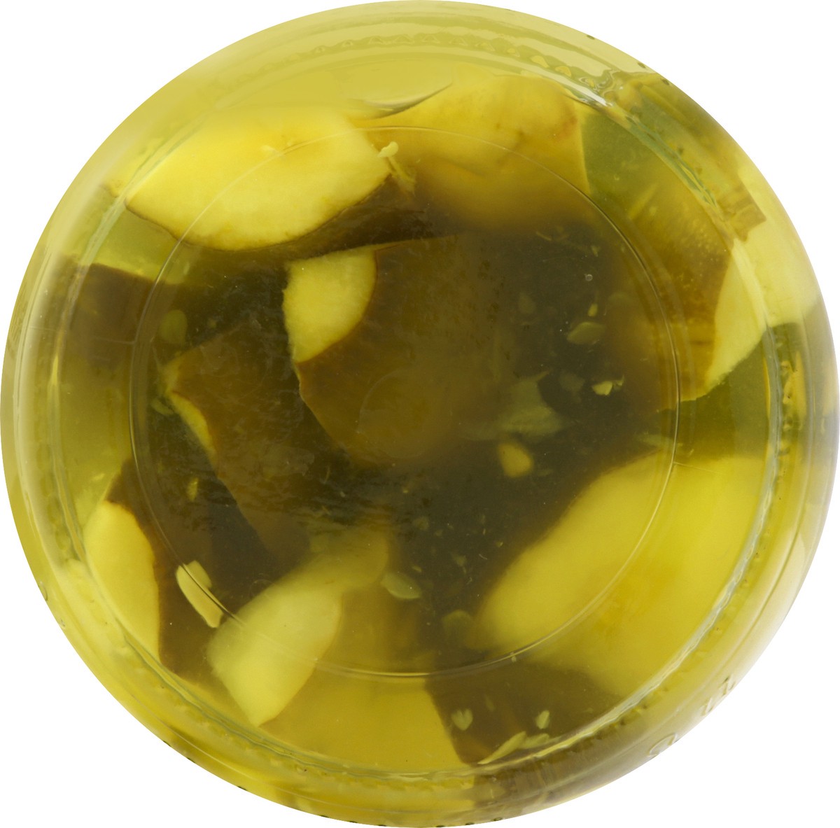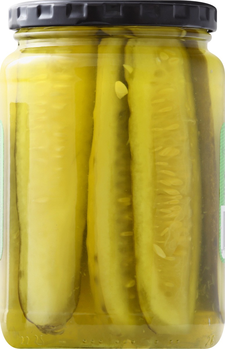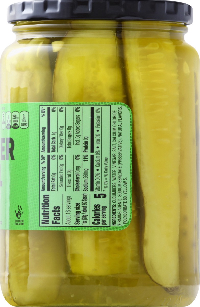 Cucumbers, Water, Vinegar, Salt, Calcium Chloride (Firming Agent), Sodium Benzoate (Preservative), Natural Flavors, Polysorbate 80, Yellow 5.