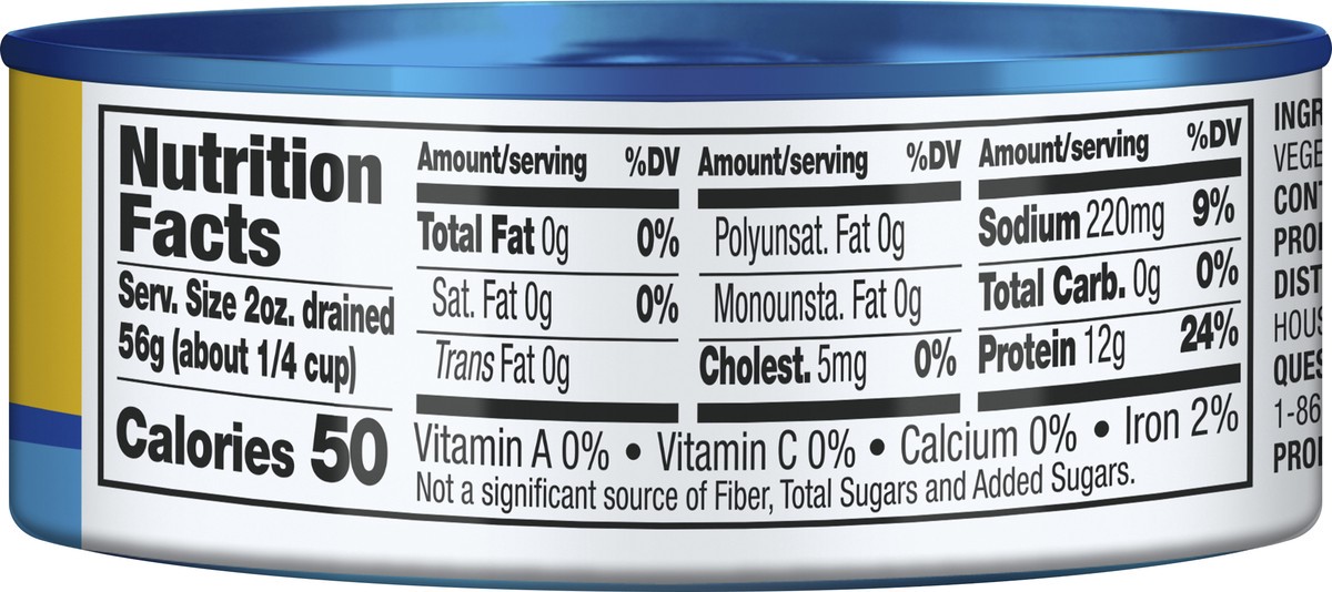 Yellowfin Tuna, Water, Vegetable Broth (Contains Soy), Salt.