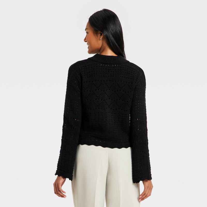 Women's Collared Crochet Cardigan - A New Day™ Black S