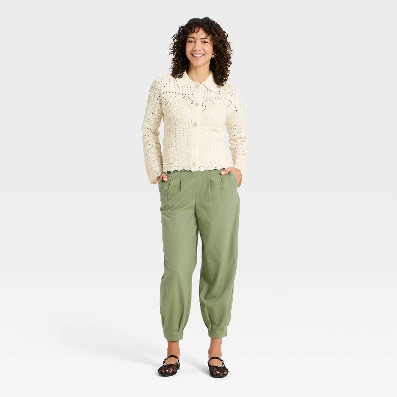 Add some beautiful texture to your outfit with this Collared Crochet Cardigan from A New Day™. Crafted from midweight cotton-acrylic blend fabric, this regular-fit cardigan showcases a charming croche…