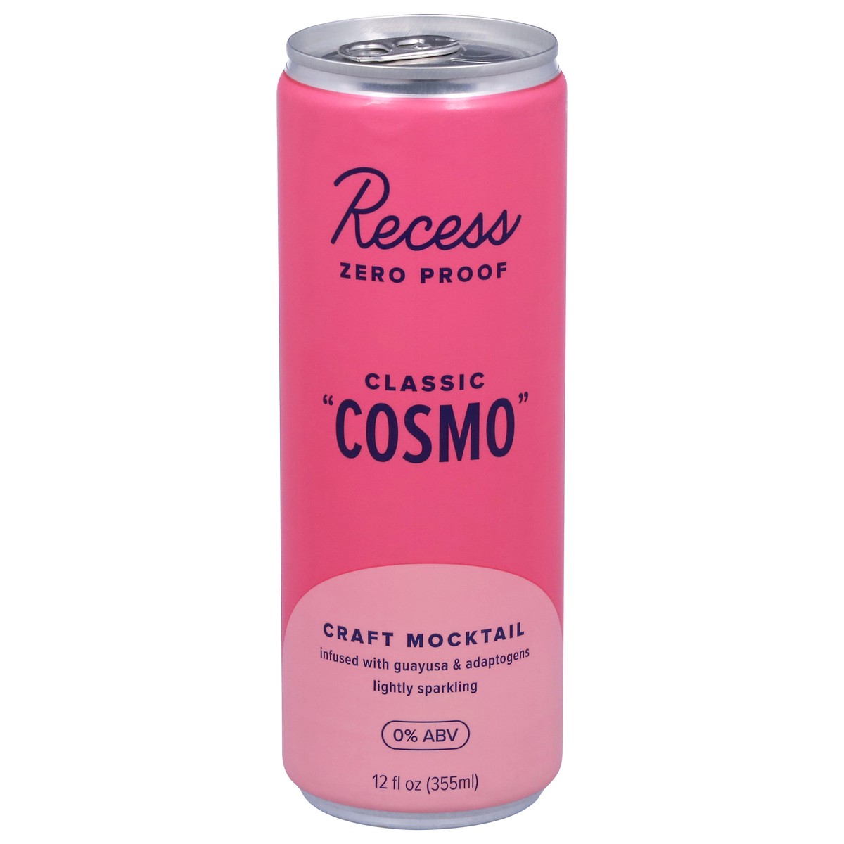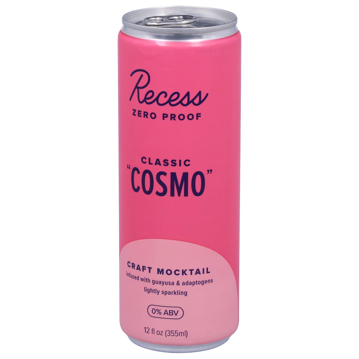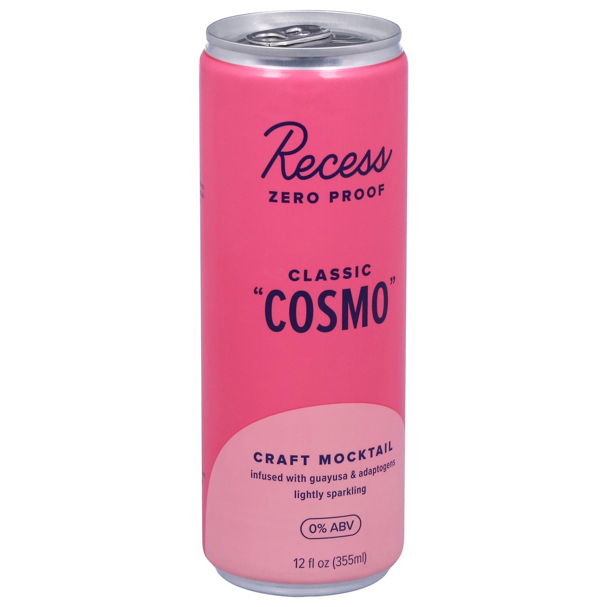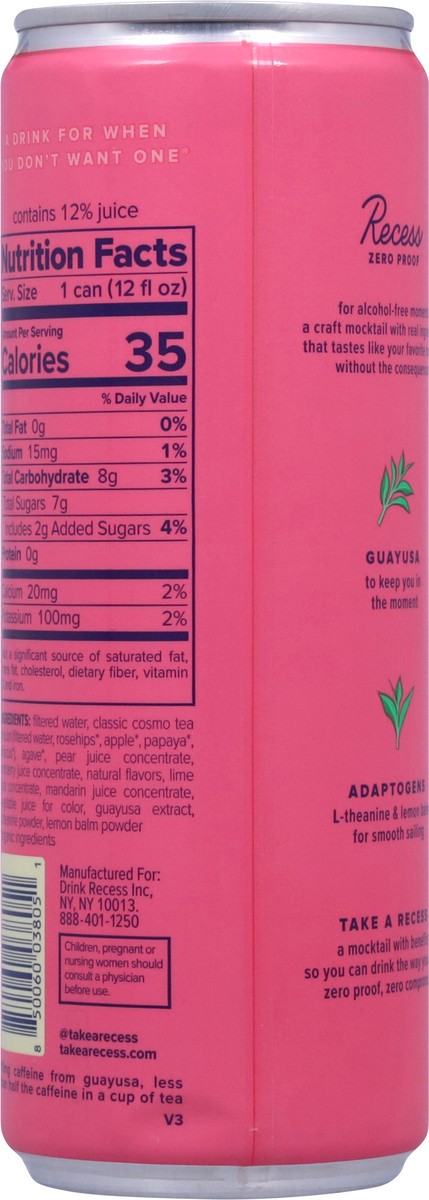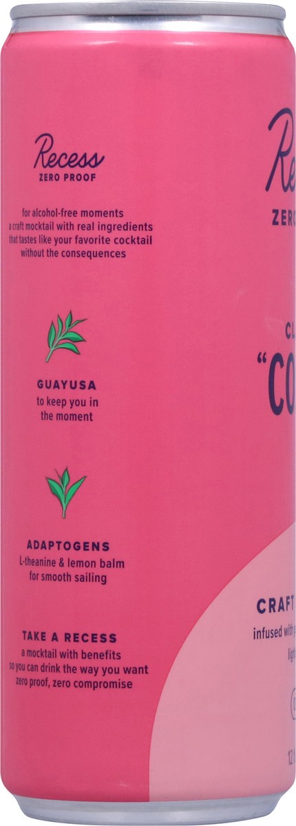 Recess Zero Proof classic "cosmo” is a craft mocktail infused with *uplifting guayusa & balancing adaptogens to taste and feel like a refreshing and perfectly balanced classic cranberry lime cosmo for…