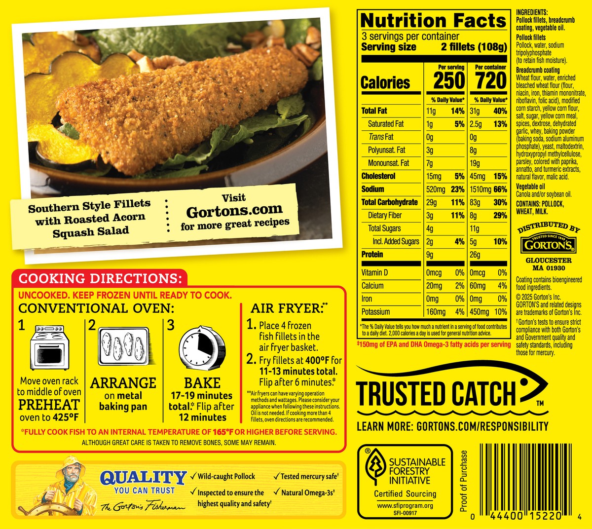 Gortons Fish Fillet Southern Fried - 11 Oz