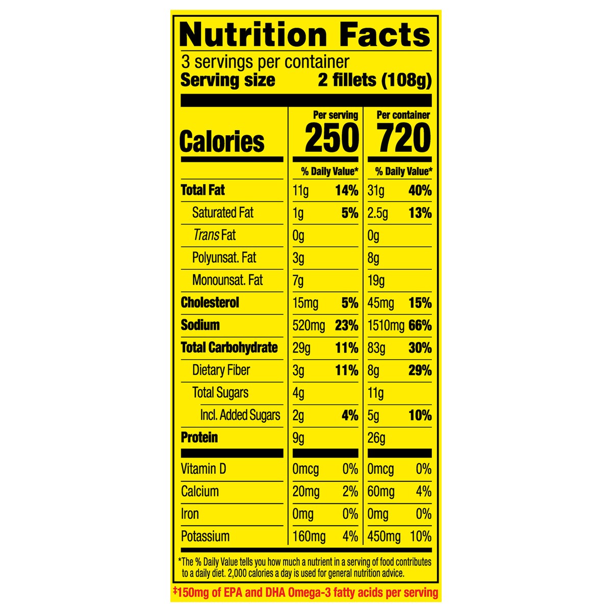 Pollock (Pollock, Water, Sodium Tripolyphosphate (to retain fish moisture), Breadcrumb Coating (Wheat Flour, Water, Enriched bleached wheat flour (Flour, Niacin, Iron, Thiamin Mononitrate, Riboflavin,…