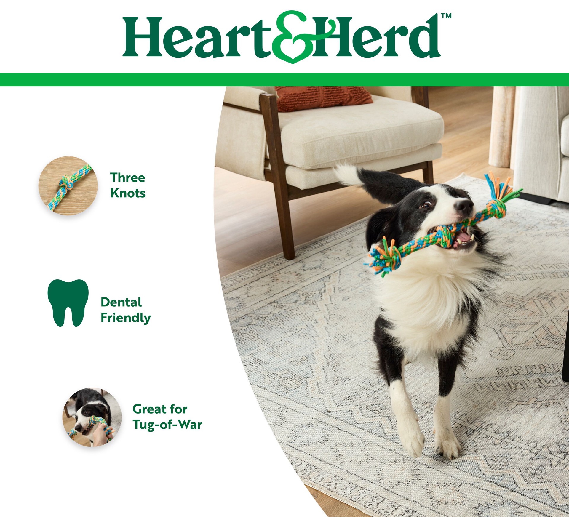 Heart & Herd Rope Tug 3 knots 15 in M Polyester Interactive Dog Toy