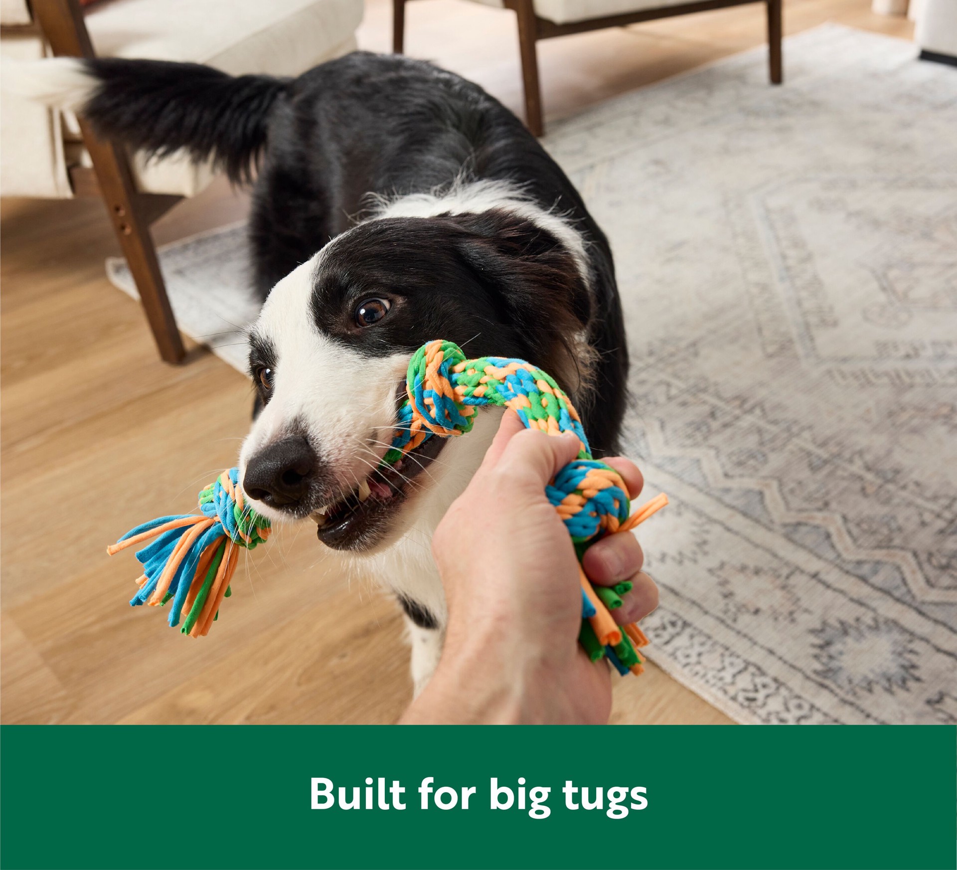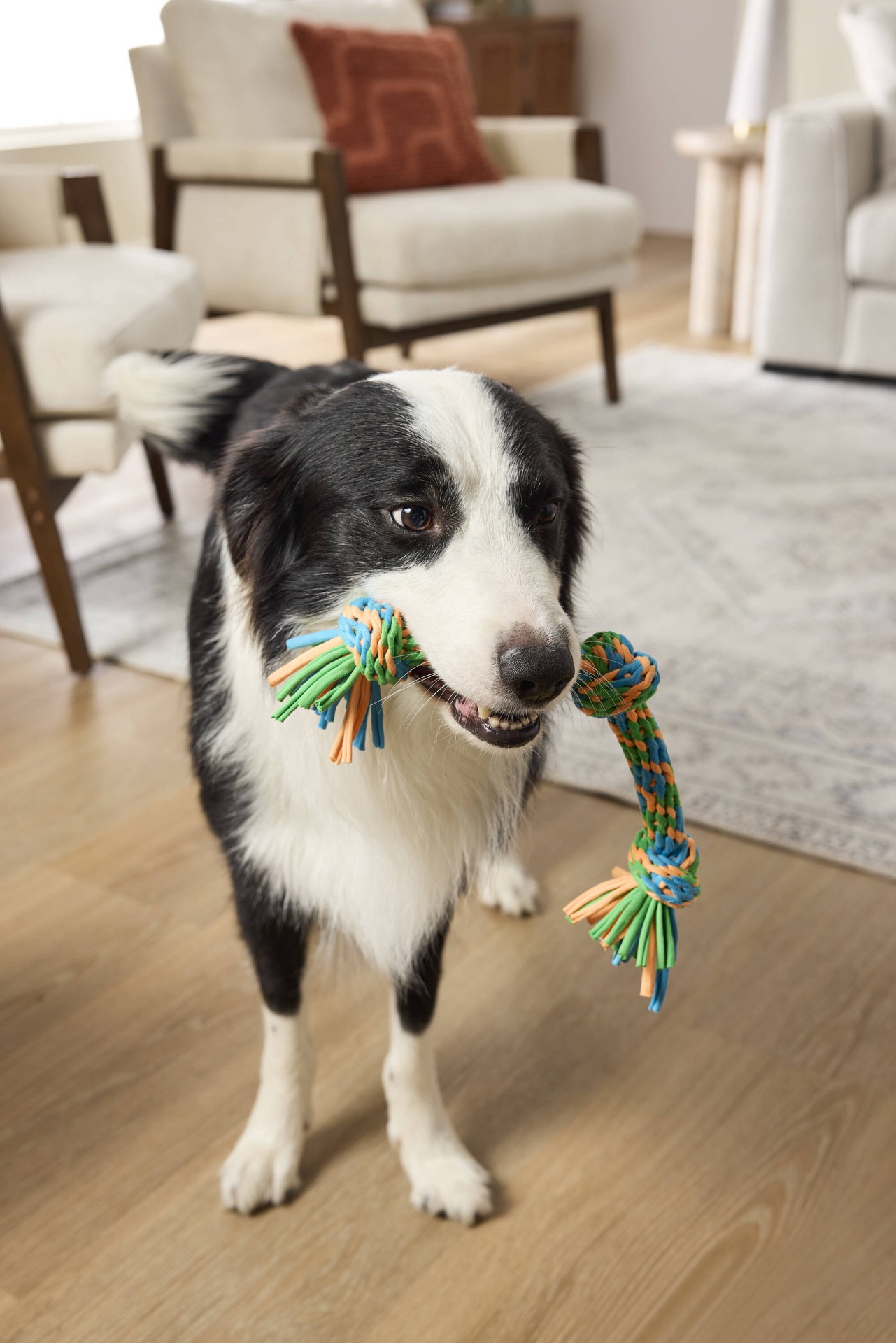 Heart & Herd Colorful Dog Rope toy with 3 knots is perfect for tugging, chewing, and fetching.. Tightly woven, knotted design helps satisfy natural chewing instincts and promote healthy teeth and gums…
