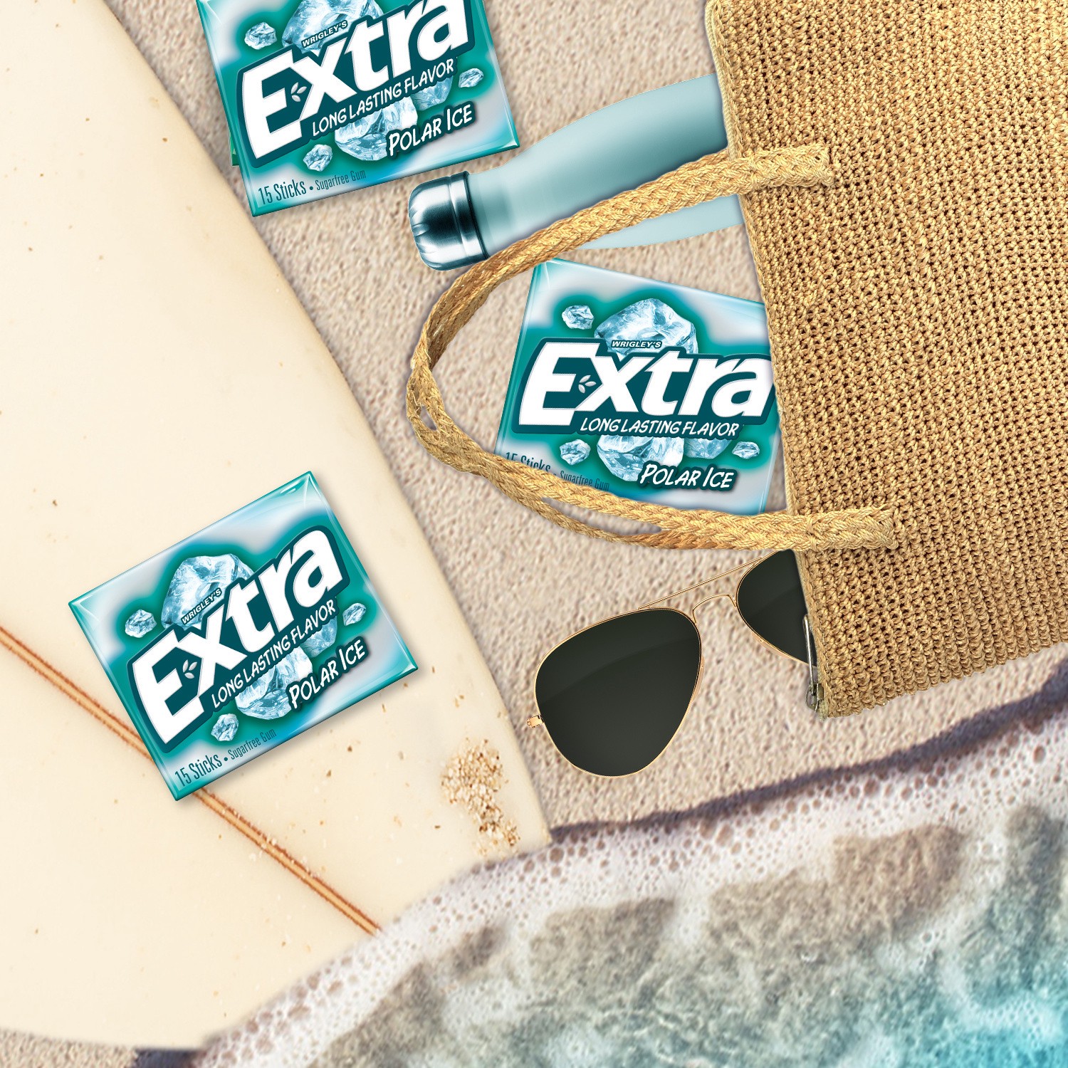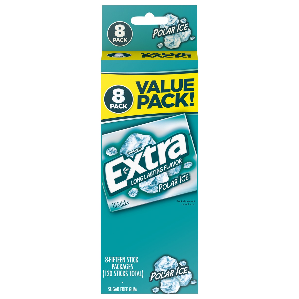 - Contains eight (8) 15-stick packs of EXTRA Polar Ice Sugarfree GumA refreshing burst of bold mint flavor that puts you in the EXTRA ZoneUnwrap a moment with EXTRA in your car