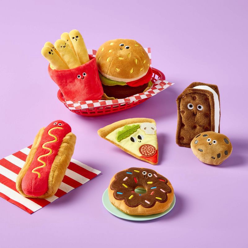 - Includes a hamburger, hot dog, fries, cookie, pizza, donut and ice cream sandwich
