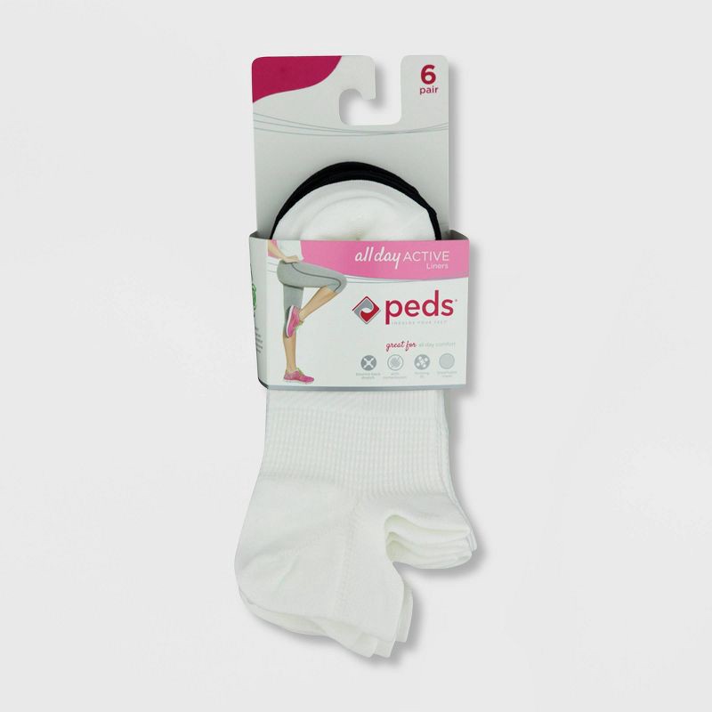 Peds All Day Active Women's 6pk Ultra Low No Show Tab Liner Socks - White/Black 5-10: Arch Support, Breathable Mesh