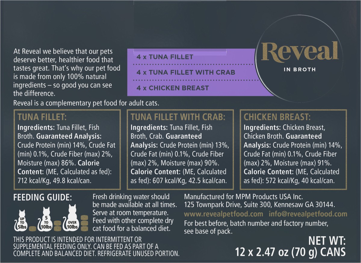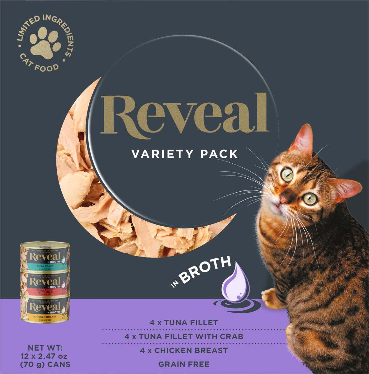 Reveal Natural Wet Cat Food Variety Selection in Broth, 12 Count, 2.47 oz Cans