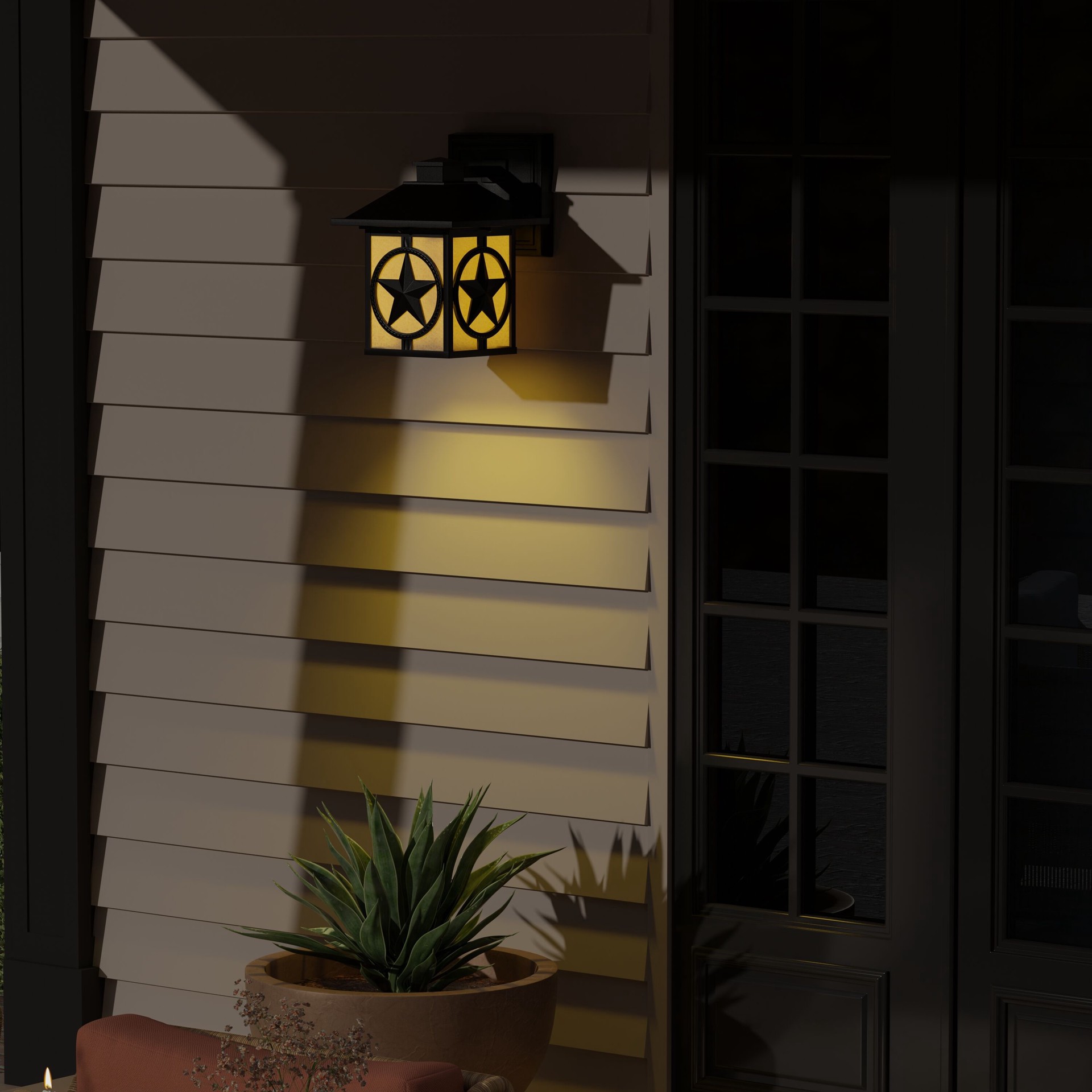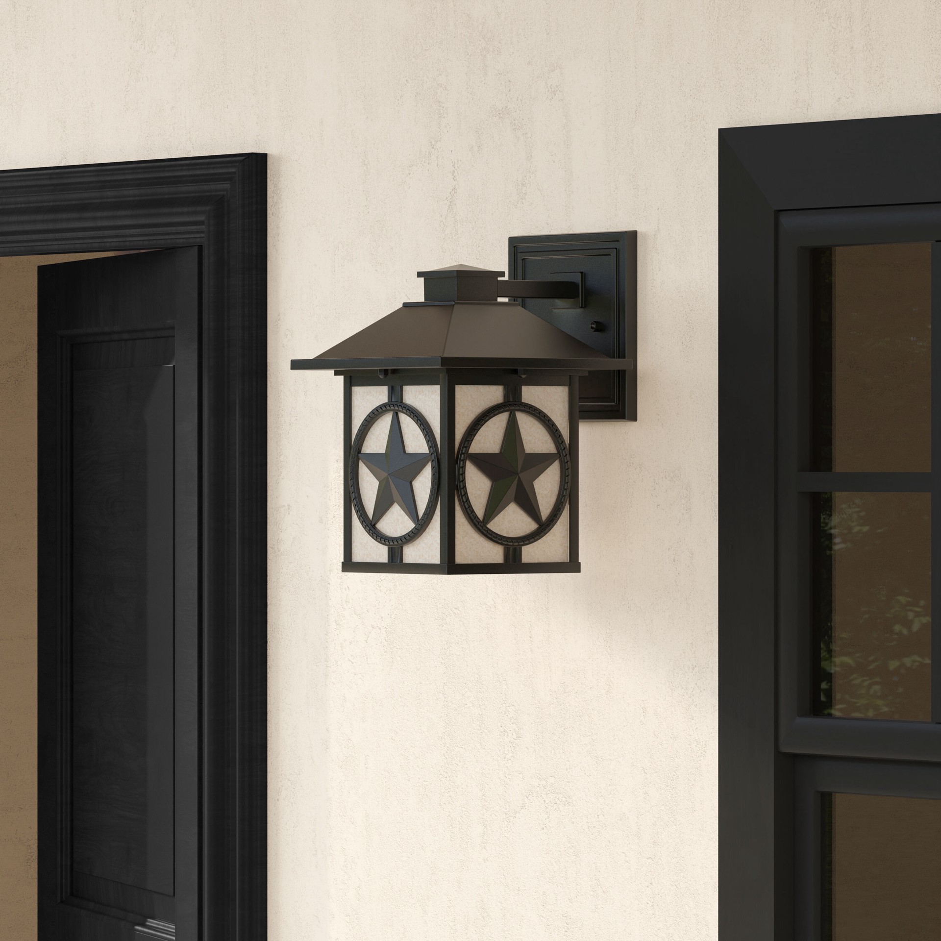 Matte black finish featuring Texas star offers western or rustic elegance. Scavo glass beautifully illuminates your outdoor space and provides added security. Crafted from weather resistant cast alumiā¦