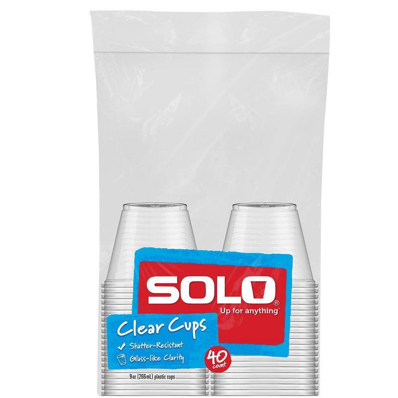 - SOLO 9 oz Plastic Party Cups, 40 count.