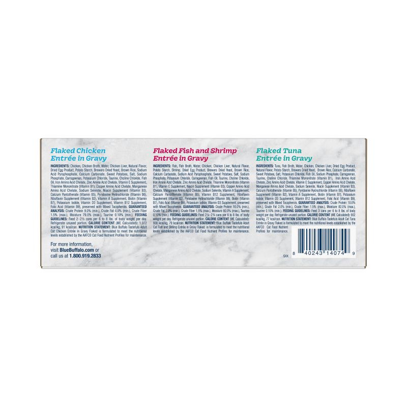 Blue Buffalo Tastefuls Natural Flaked Wet Cat Food Variety Pack, Tuna, Chicken, Fish & Shrimp Entrées in Gravy - 3oz/12ct