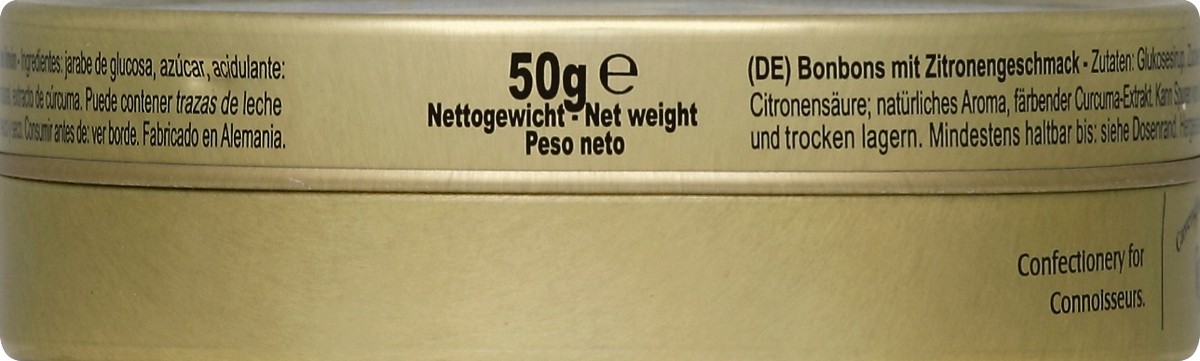 Lemon Flavored Candies - Ingredients: Glucose Syrup, Sugar, Acidifier: Citric Acid, Natural Flavouring, Colouring Turmeric Extract.