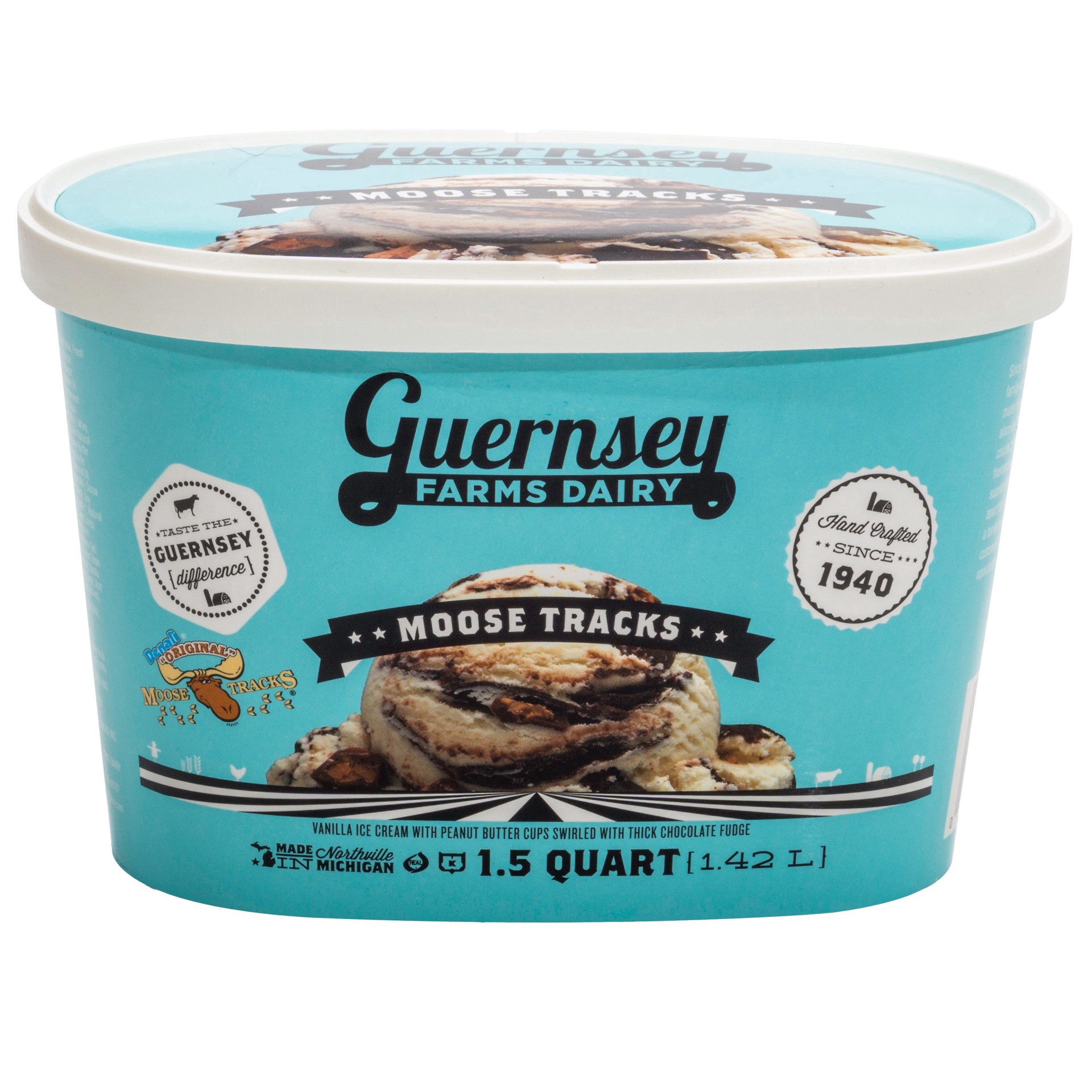 Vanilla ice cream with peanut butter cup candy bars swirled with Ryba's Mackinac Island fudge