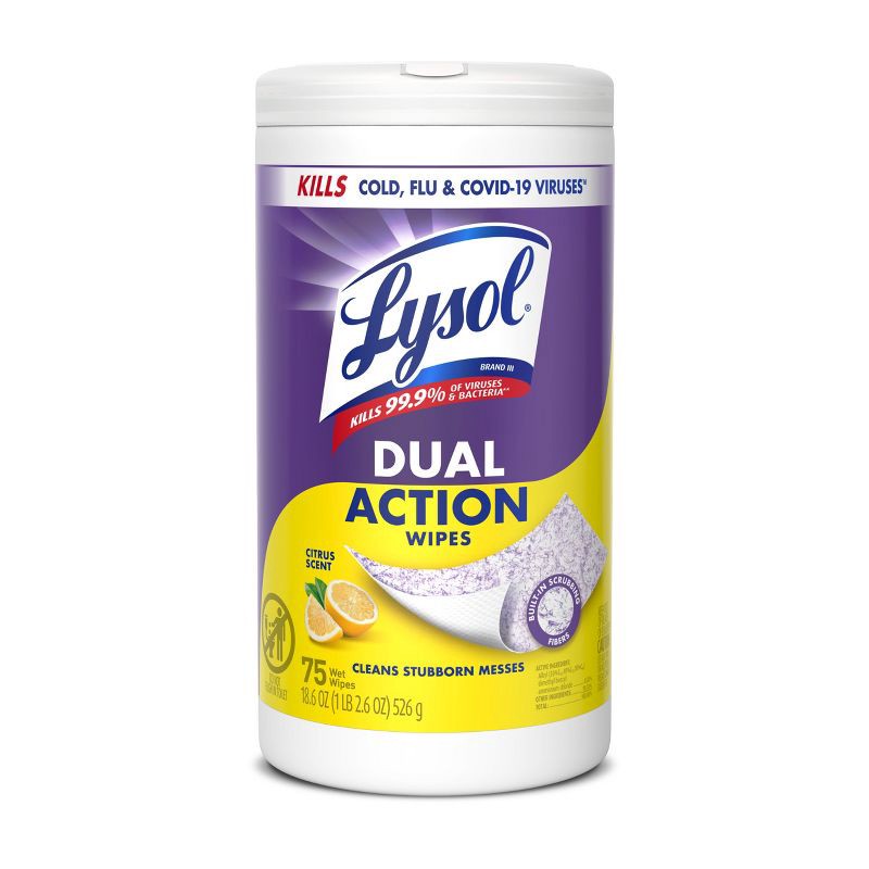 Lysol Citrus Disinfecting Dual Action Wipes - 75ct: Multi-Surface Cleaner & Disinfectant in Plastic Canister