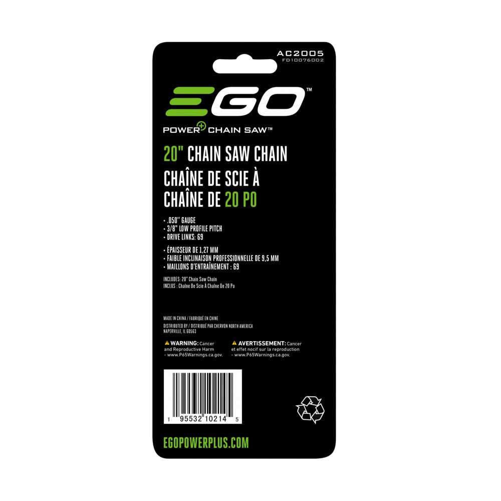 For use with EGO POWER+ 20” Chain Saw (CS2000/CS2005). .050-inch gauge. 3/8-inch low profile pitch. 69 drive links. Low kickback design. Genuine EGO parts are designed specifically for your EGO POWER+…