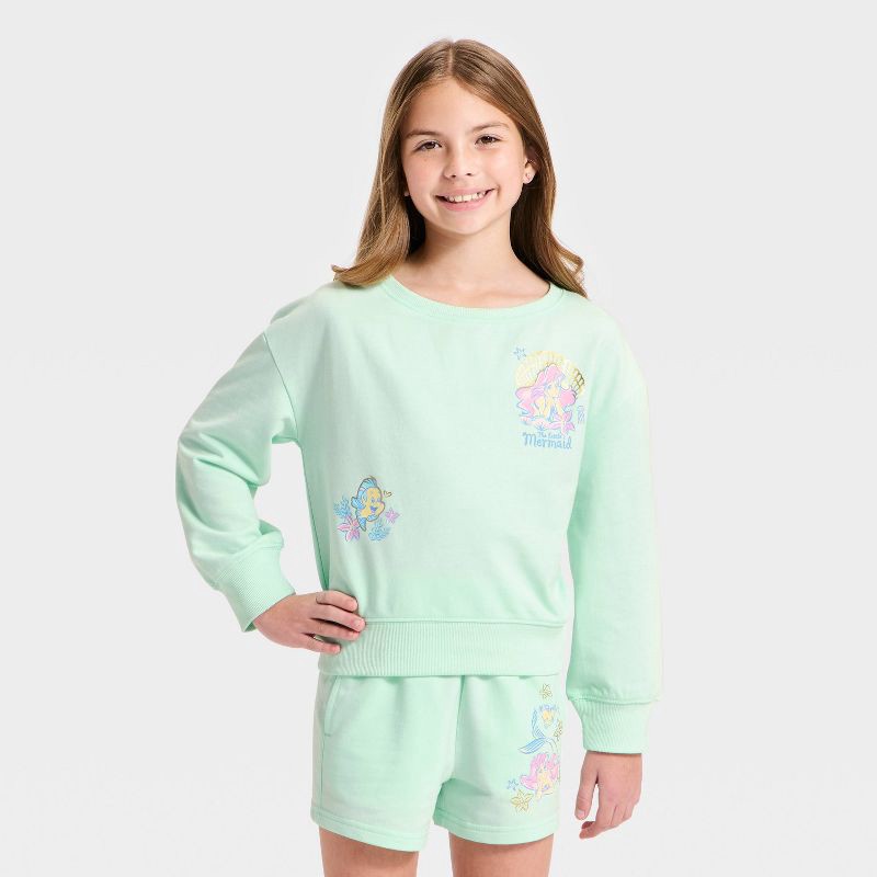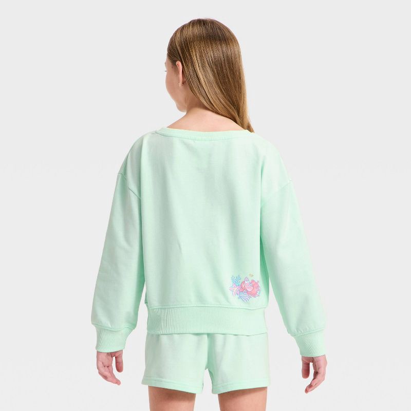 Disney Princess Girls' Disney Little Mermaid Front and Back Graphic French Terry Fleece Wide Neck Sweatshirt - Light Green S