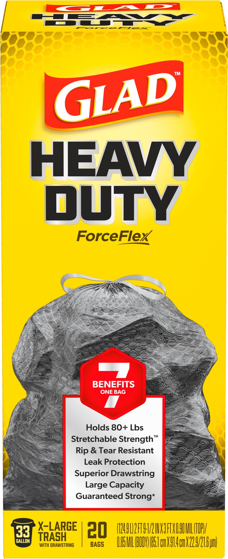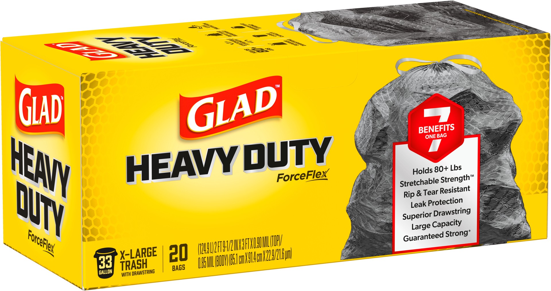 Gladâ Large Drawstring Trash Bags, Forceflex 33 Gallon Black Trash Bags, 25 Count
