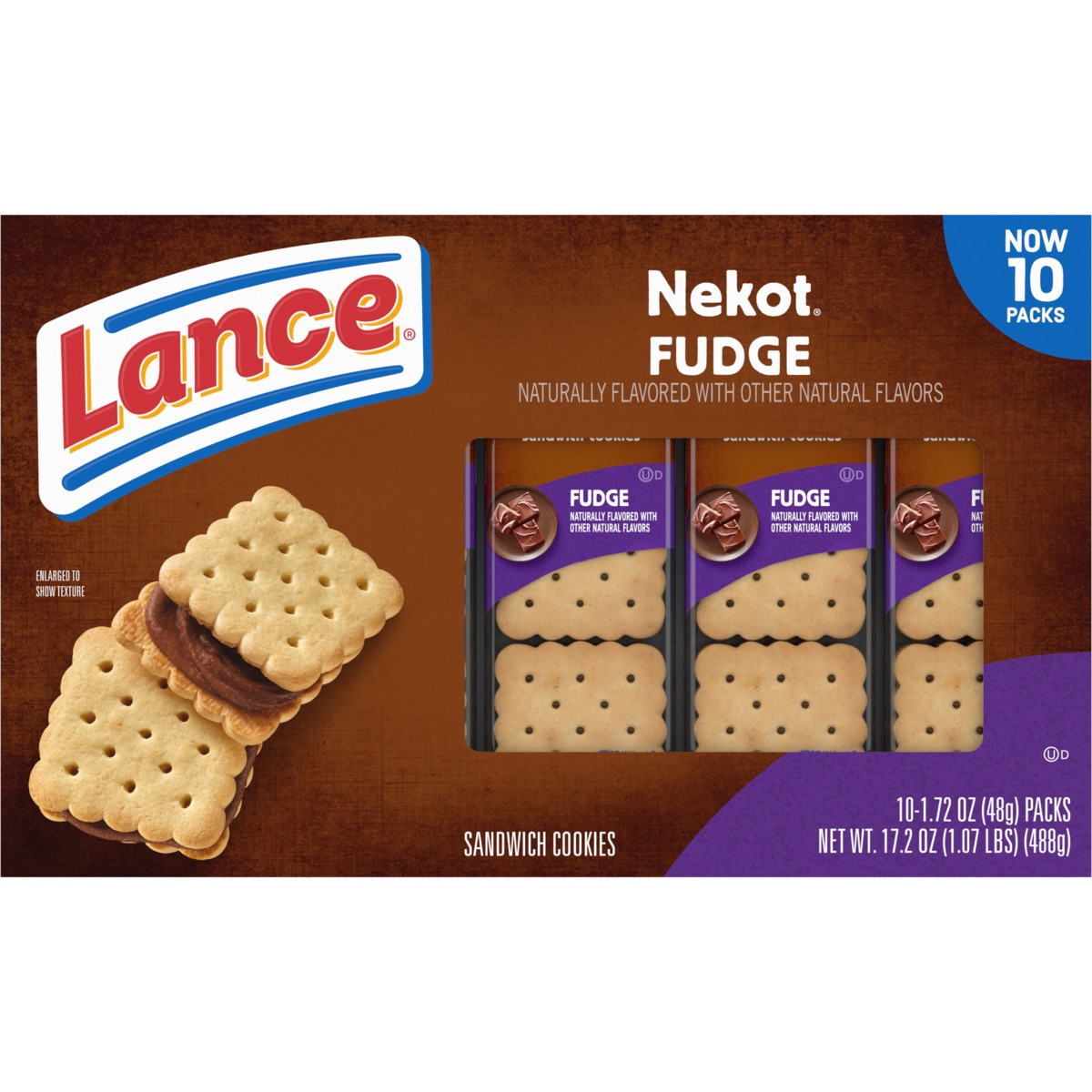 Get ready for a totally tasty treat! With Lance Nekot Fudge sandwich cookies, we combined the best of our delicious cookie treats with the irresistible, creamy flavor of our smooth fudge-flavored fill…