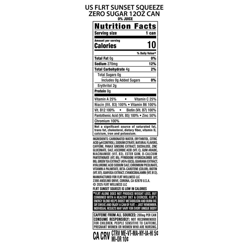 - TURN UP THE HEAT | FLRT Sunset Squeeze helps you feel bright, bold, and fully charged. FLRT's energy blend helps boost metabolism and supports fat-burning when paired with healthy diet and exercise