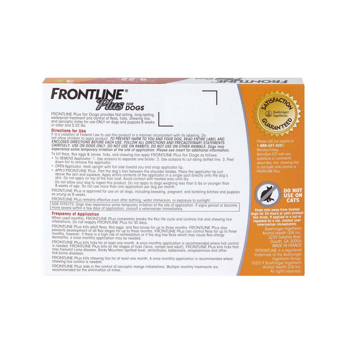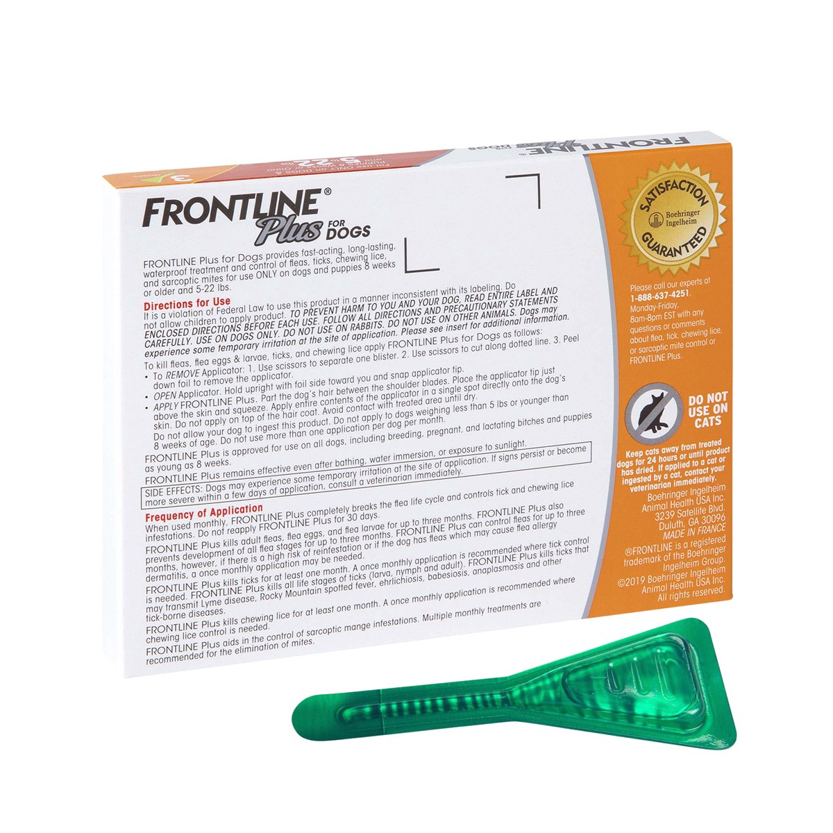 Frontline Plus for Dogs 5 to 22 Lbs Flea and Tick Protection 3 Each