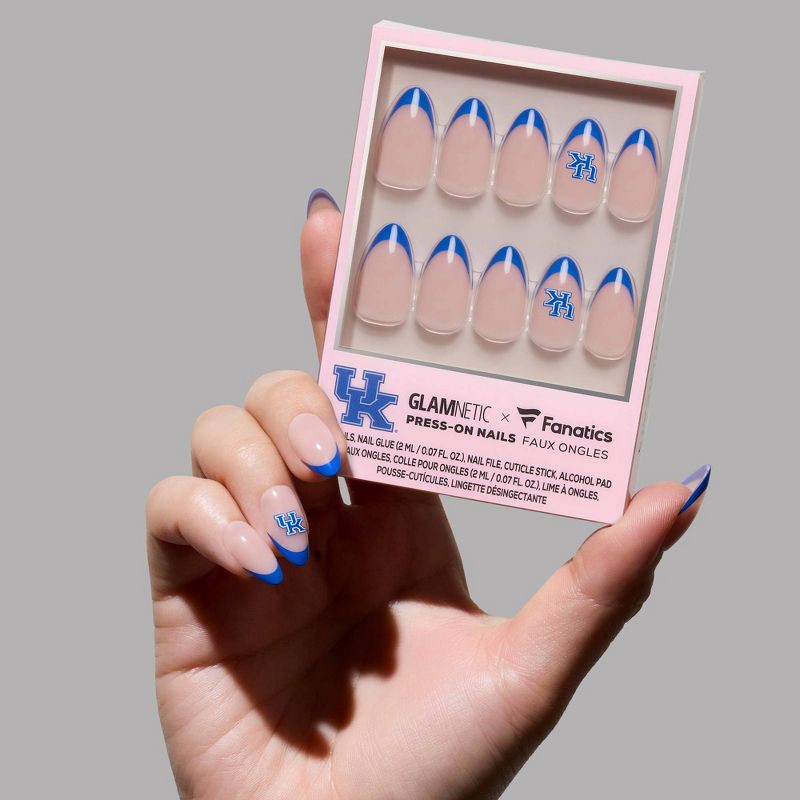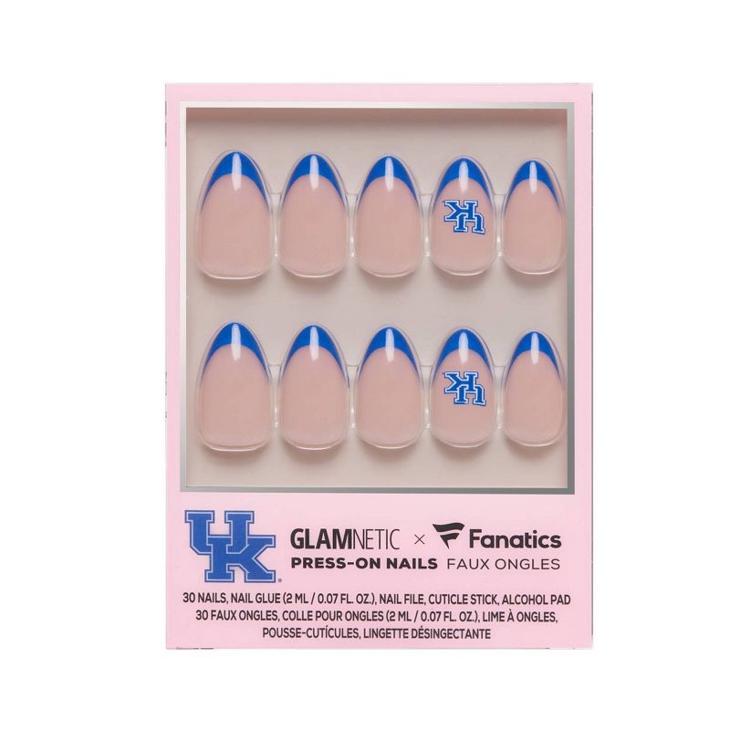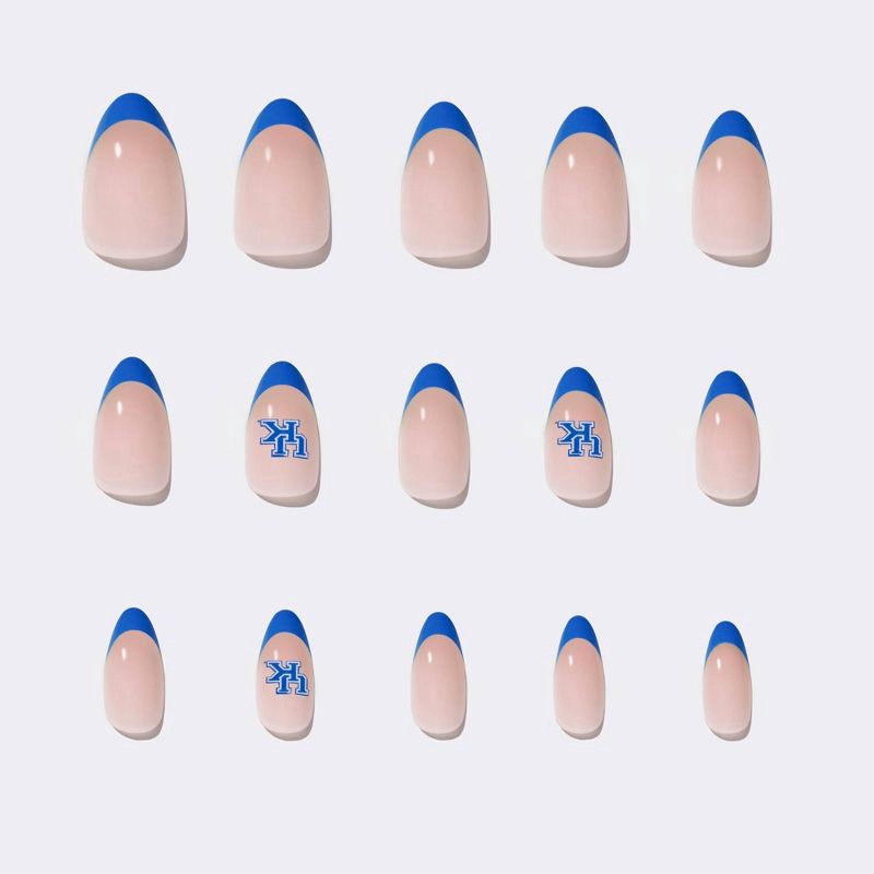 The Kentucky Wildcats Press-On Nail Set pays homage to the Big Blue Nation with royal blue French tips and accent nails flaunting the iconic team logo. Designed in a short almond shape with a sleek, g…