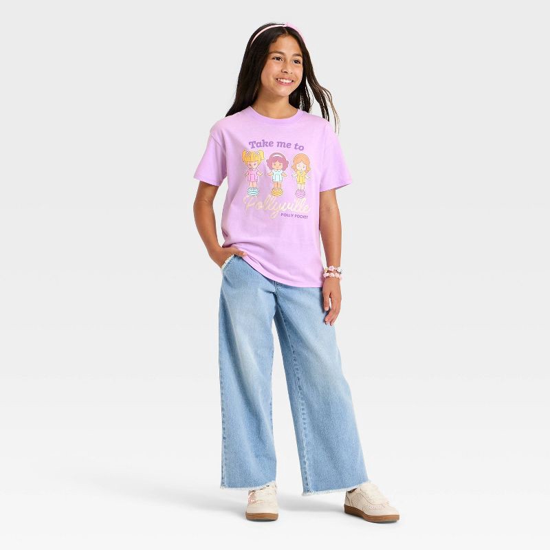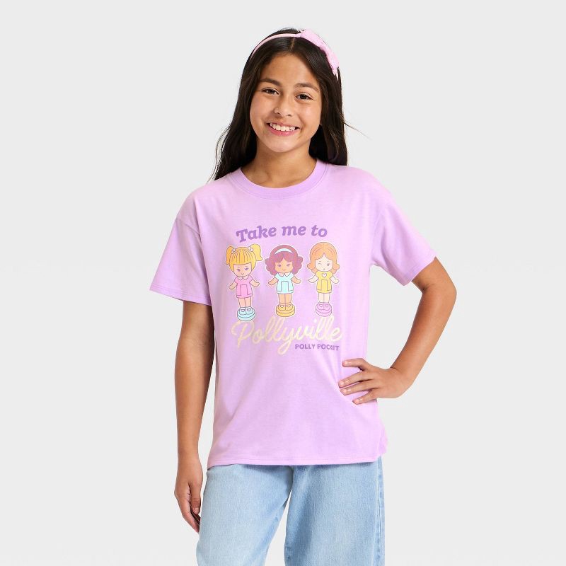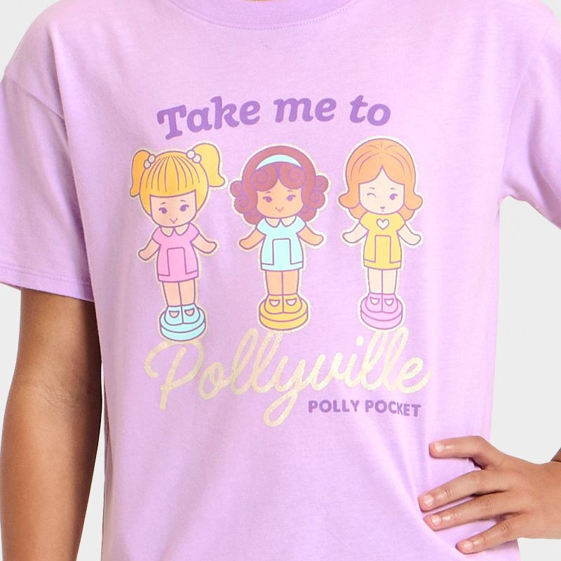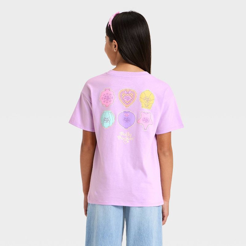 Girls' Polly Pocket Oversized Front and Back Graphic Short Sleeve T-Shirt - Purple M