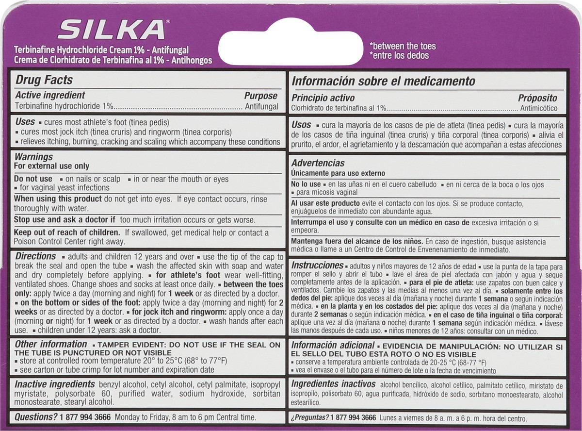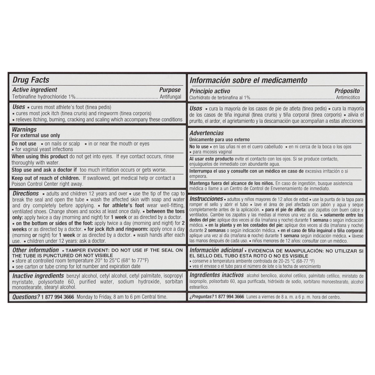 Active Ingredients: Terbinafine Hydrochloride (1 %), Antifungal. Inactive Ingredients: Benzyl Alcohol, Cetyl Alcohol, Cetyl Palmitate, Isopropyl Myristate, Polysorbate 60, Purified Water, Sodium Hydro…