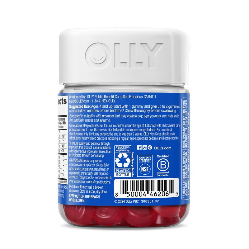 - OLLY Kids Sleep gummies are red raspberry flavored with other natural flavors