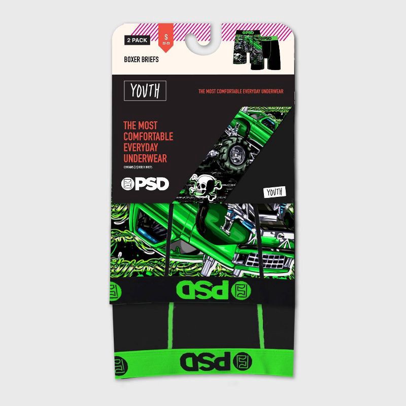 PSD Boys' 2pk Monster Truck Printed Boxer Briefs - Green L